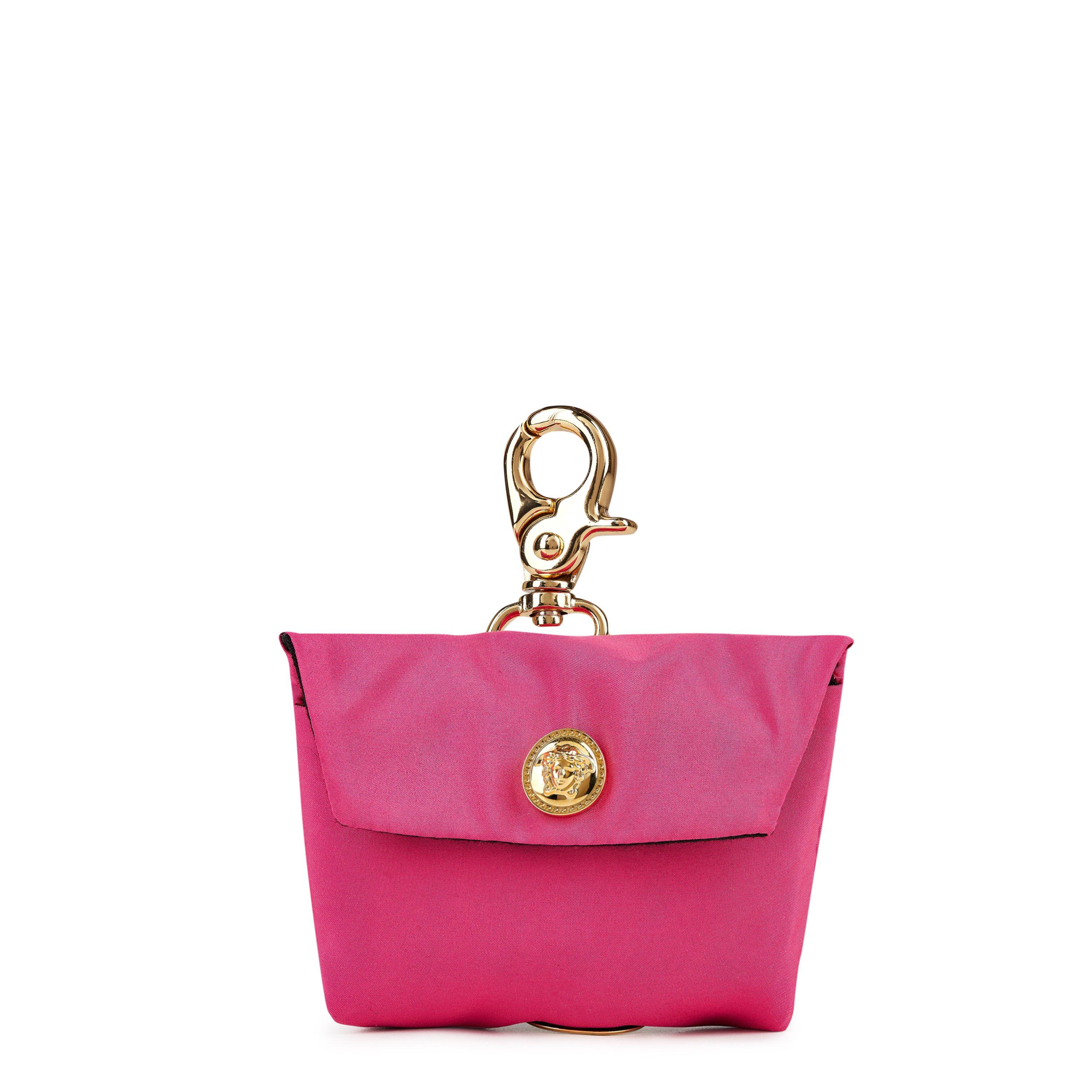 For the ultimate in convenience and style, this pet waste bag holder from Versace in a choice is detailed with Medusa studs and comes with a keyring and crystal-embellished charm. The case can be attached to the matching leash and does not include refill bags.