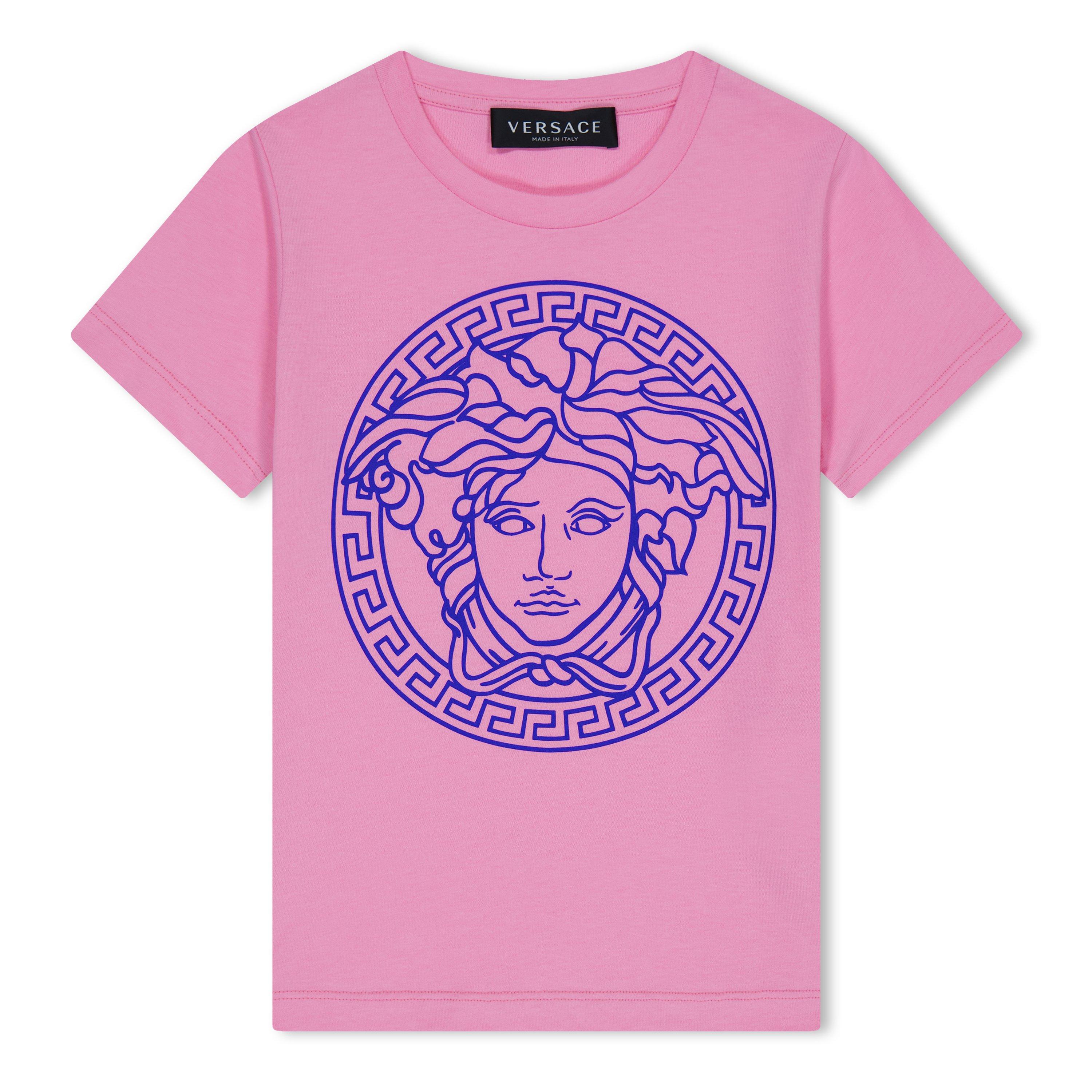 Celebrated for its Grecian and Roman-inspired designs, Versace presents the Children's Medusa T-Shirt, the perfect way to spoil your youngster. Crafted with the utmost attention to detail in the finest organic cotton jersey, this kid's tee offers a sustainable touch, ensuring comfort while reducing environmental impact. A ribbed crewneck and short sleeves provide a classic and timeless look, while the straight hem adds a clean, polished finish.