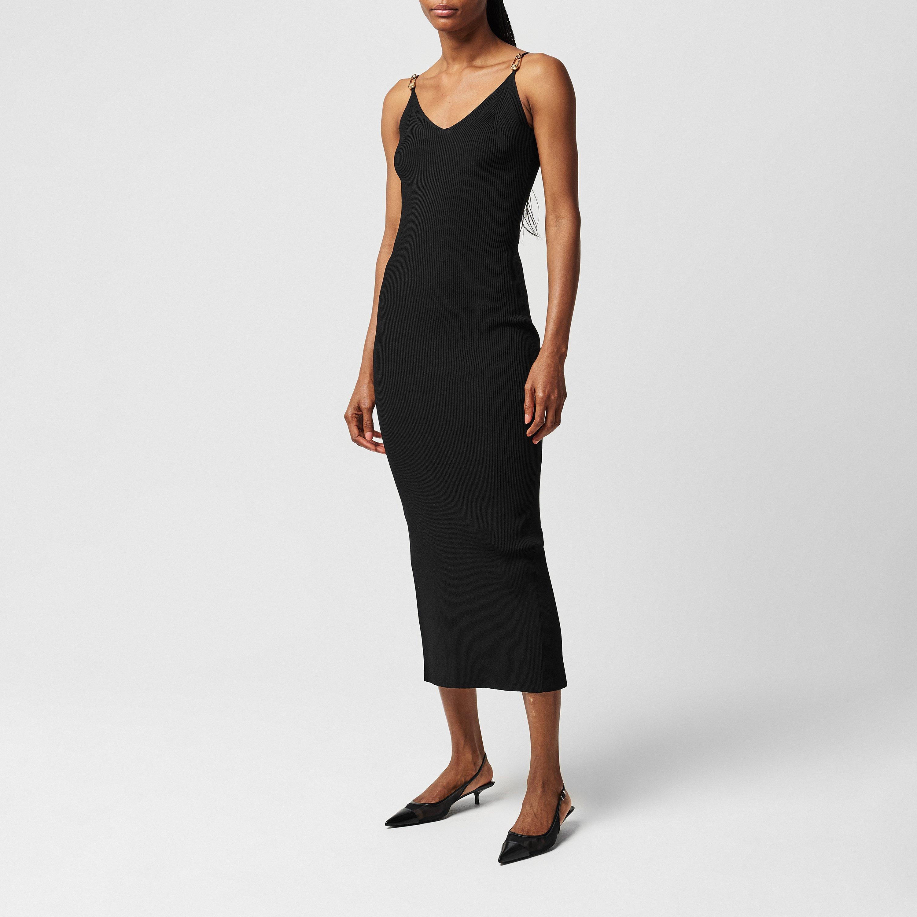 Versace channels its iconic heritage with this striking dress, the Embellished Stretch-Jersey Midi Dress. Inspired by the legendary 1994 design worn by Elizabeth Hurley. Crafted from lightweight stretch-jersey, it hugs the body for a sleek silhouette, while signature pin embellishments add bold edge. A dramatic back split completes the look with flair. Ideal for upscale evening events or red carpet-worthy nights out.