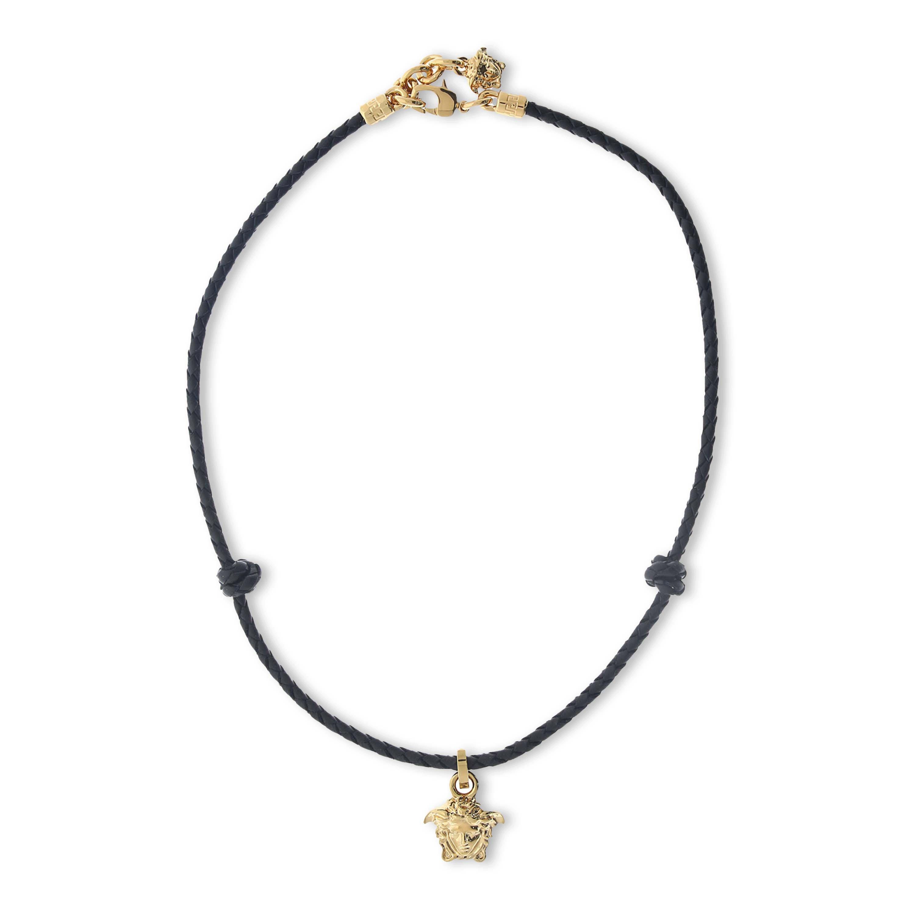 Elevate your jewellery collection with this daily piece, the Medusa Cord Bracelet brought to you by Versace. Designed with a cord bracelet and a lobster clasp fastening with an adjustable chain, the piece boasts an iconic Medusa head charm for brand appreciation with every wear. Composition: Cord & Gold-tone plated Brass. Accompanied by luxury branded boxing.