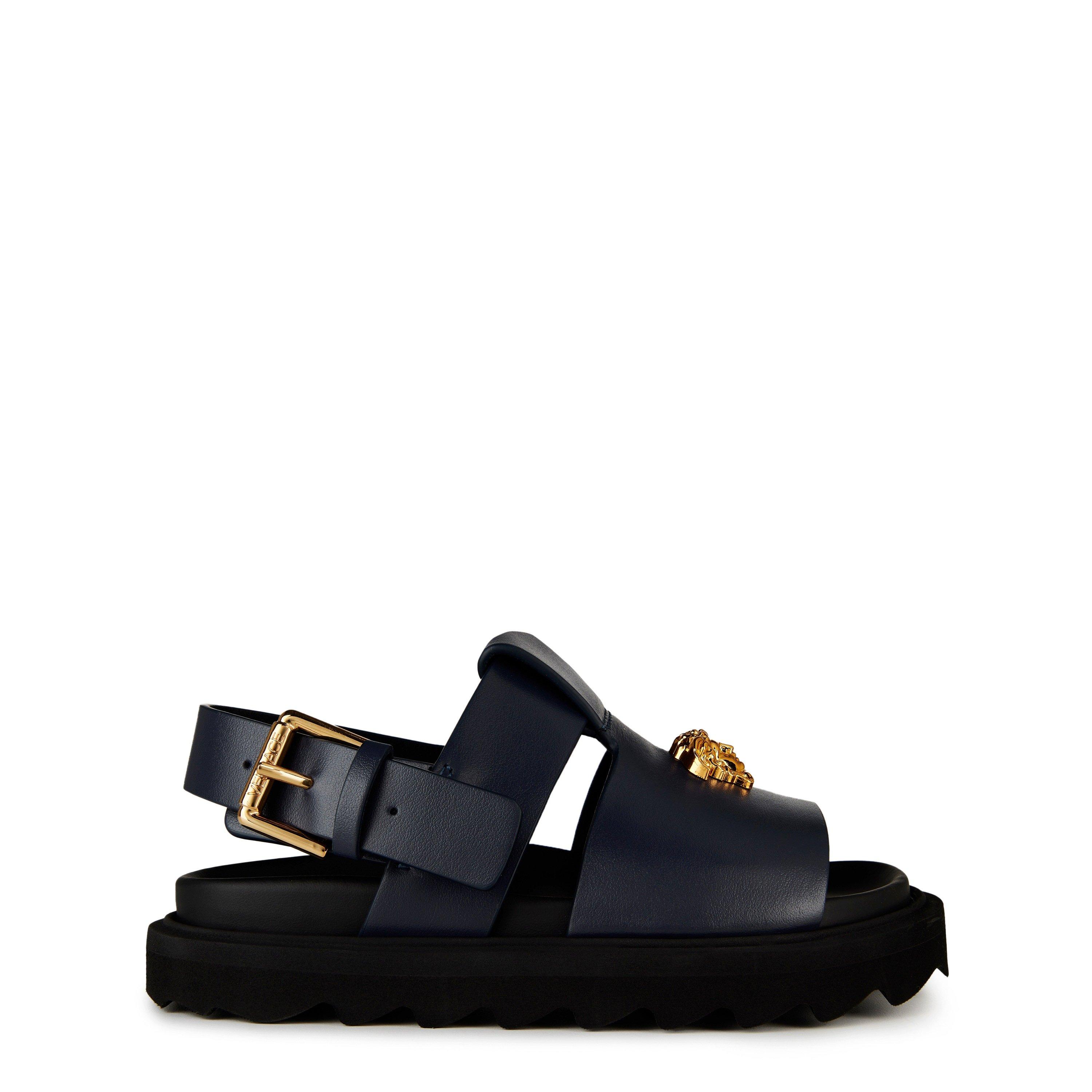 Defined by Versace's Medusa emblem, the La Medusa Sandals pair confident house styling with an understated flat profile.