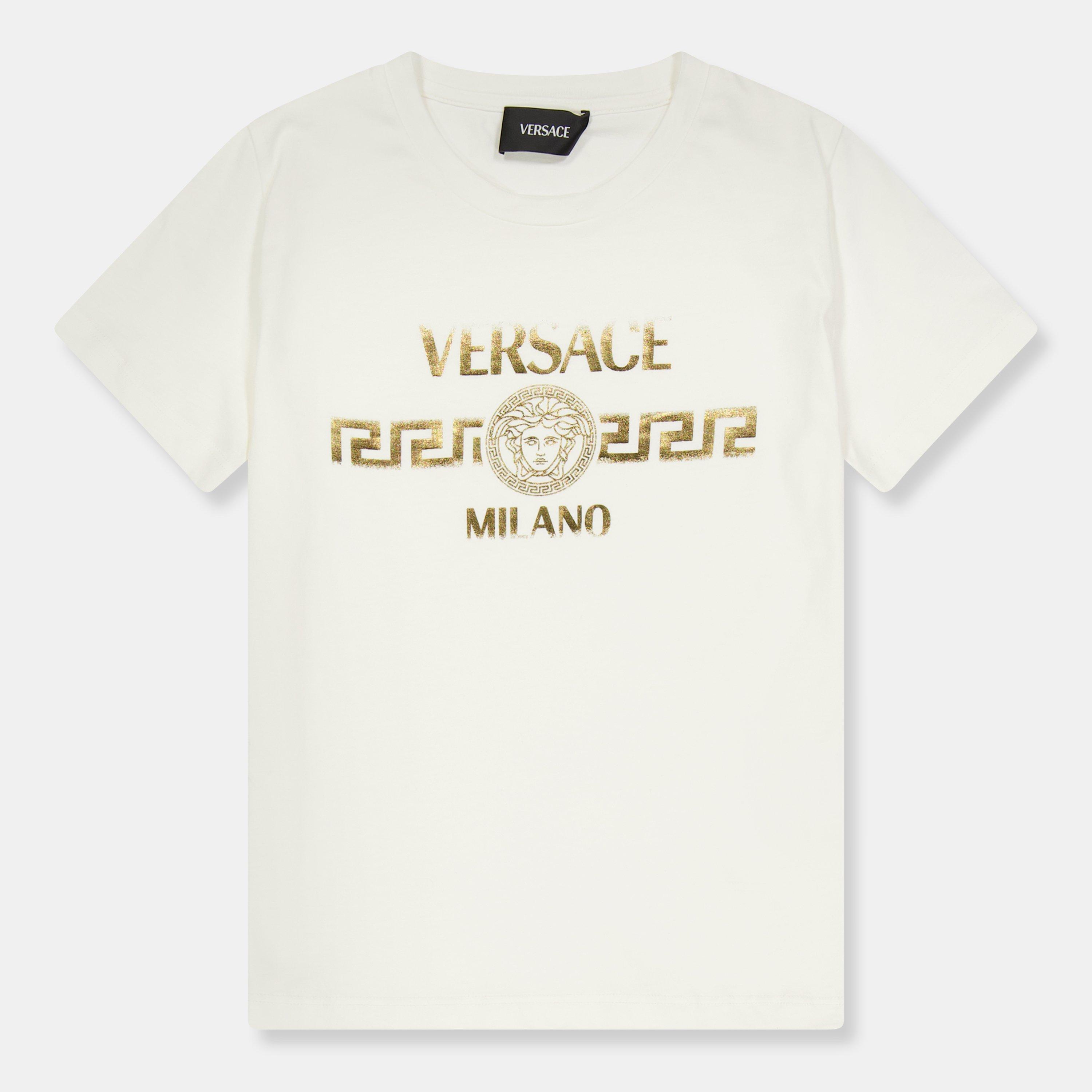 The Versace Kids' Logo T-Shirt brings house style to everyday wear. Cut to a regular fit, this piece offers comfort and freedom of movement for active days.