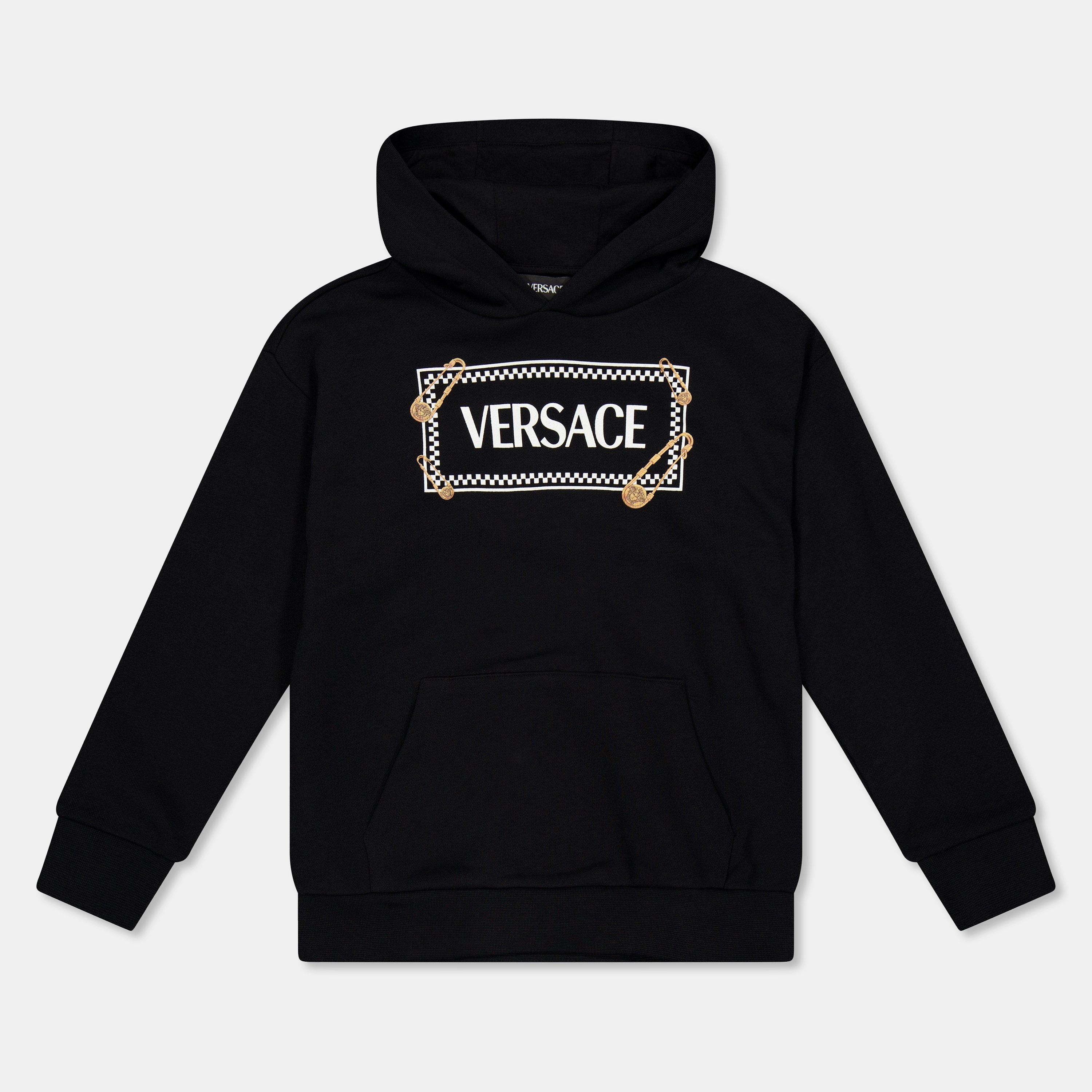 Versace's Over the Head Hoodie for kids offers practical styling in a comfortable everyday form. The design features Versace branding in this unisex piece, suitable for casual wardrobes.