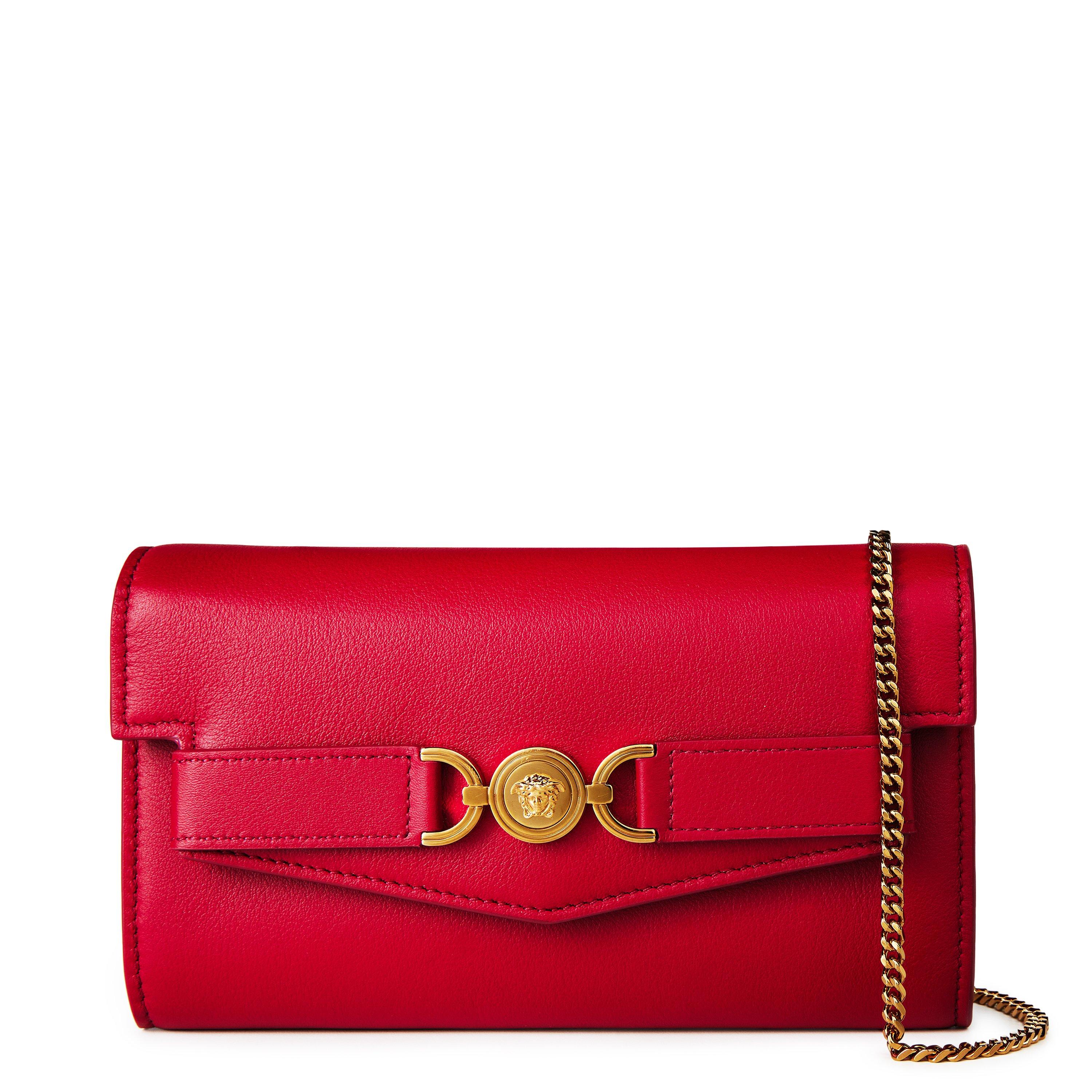 Versace's Medusa 95 Wallet On Chain offers functionality with style, featuring the brand's Medusa hardware on a chain design that transitions from day to evening.
