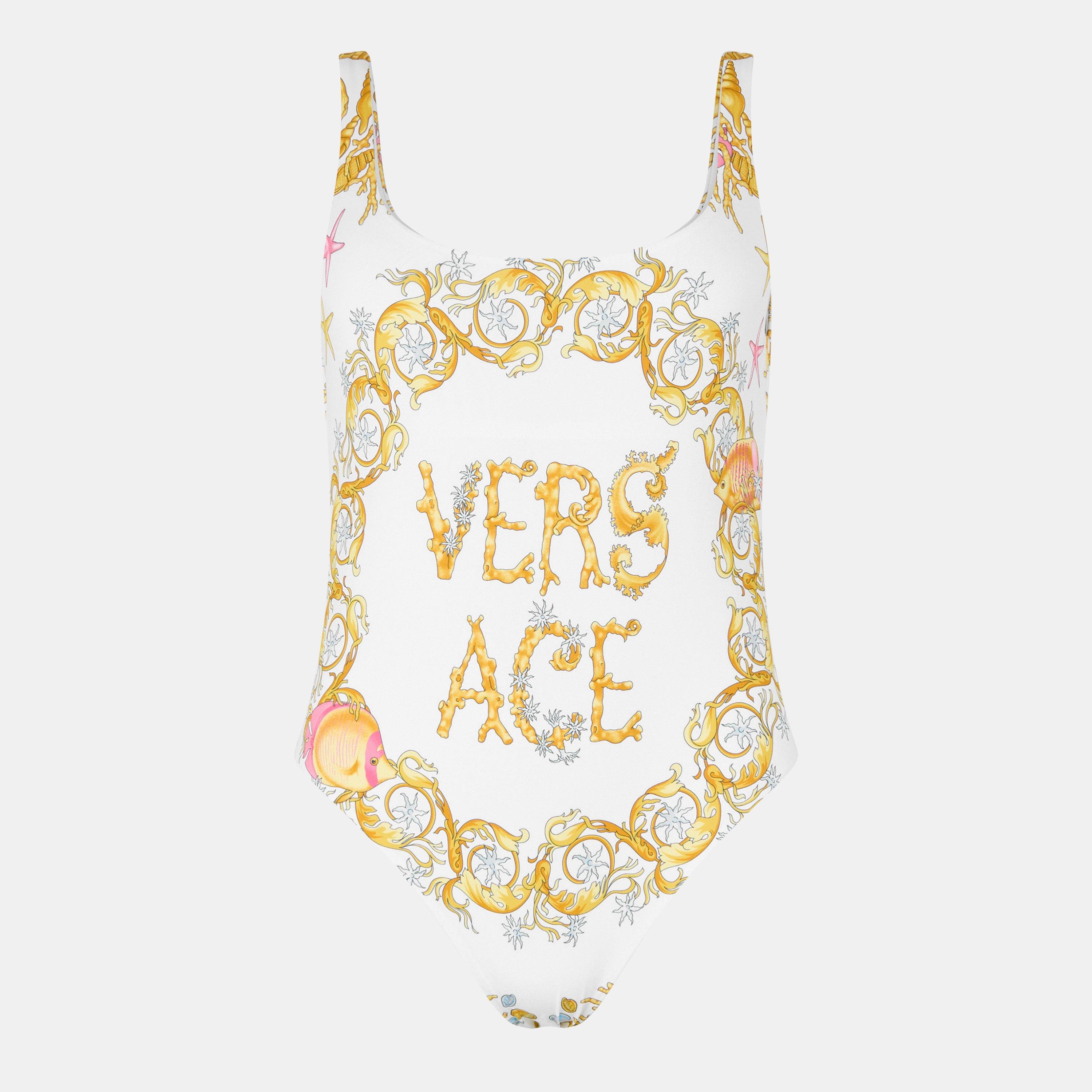Versace's Scoop Neck Swimsuit features a clean-lined design. The scoop neckline provides a defined shape, while the swimsuit material contours to your body for a comfortable fit.