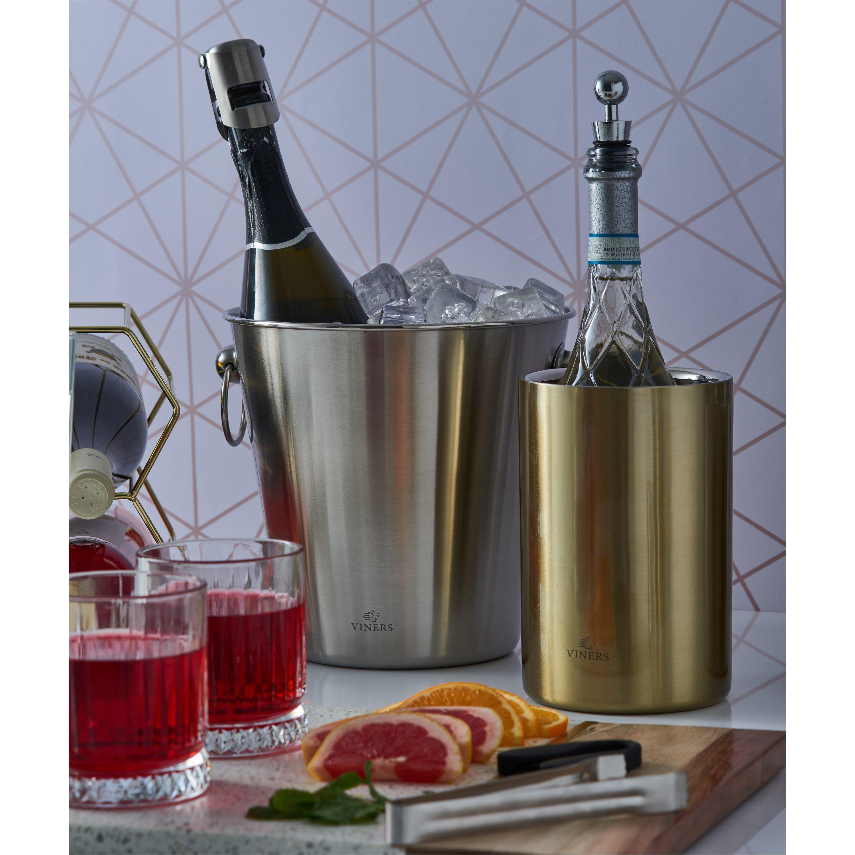 Made from fine quality steel, our bottle cooler is strong, has a mirror polished interior and a satin brushed gold effect on the exterior. Hand wash only without abrasive sponges. Wash before first use.