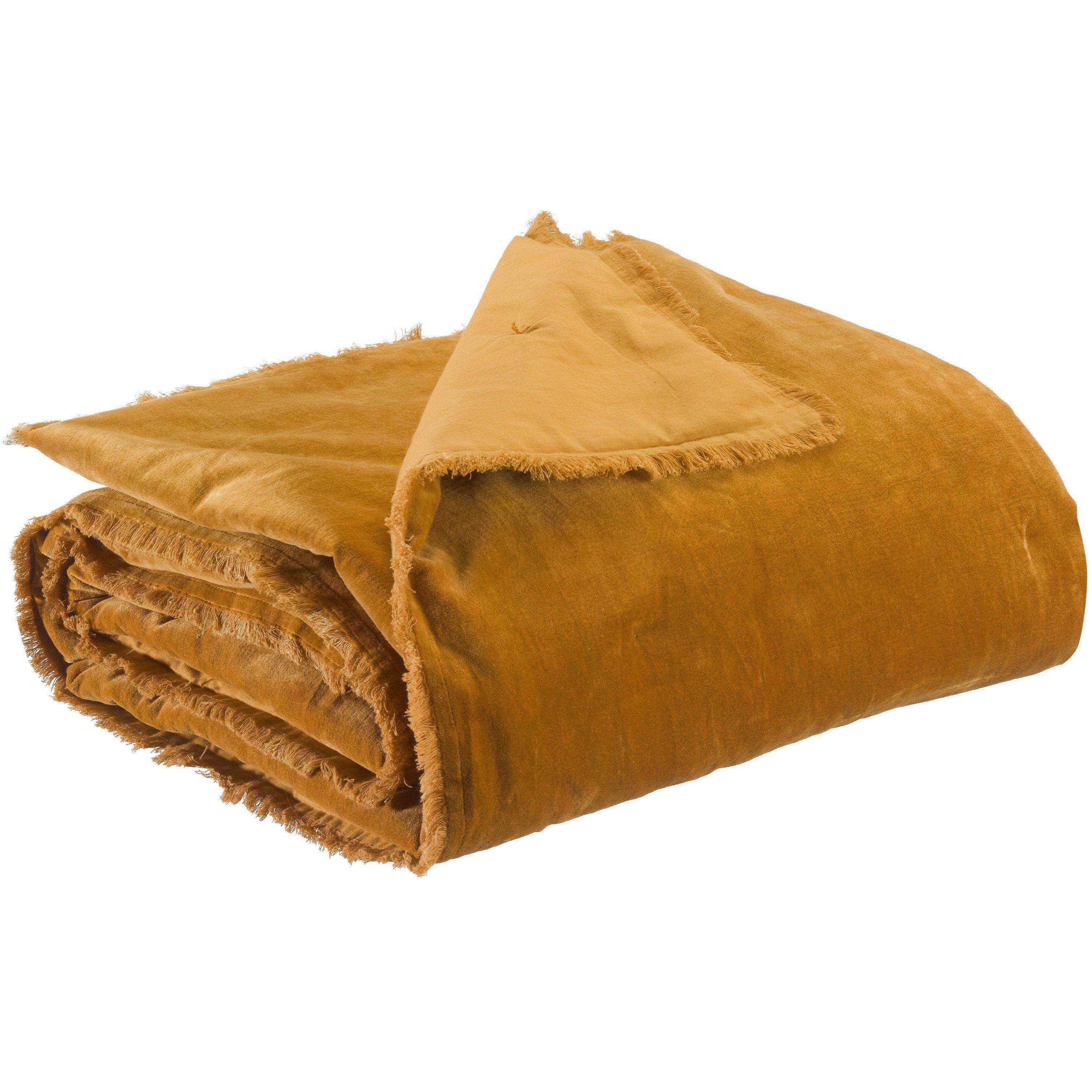 A stylish fringed throw size 135 x 200 cm ideal for a Double Bed of Sofa to keep you warm during the winter. The solid Fara throw from the Vivaraise brand features a 100% cotton cover and 100% polyester filling. Enjoy its softness by wrapping yourself in this throw. If you're not using it, it will be the perfect decorative touch for your interior.