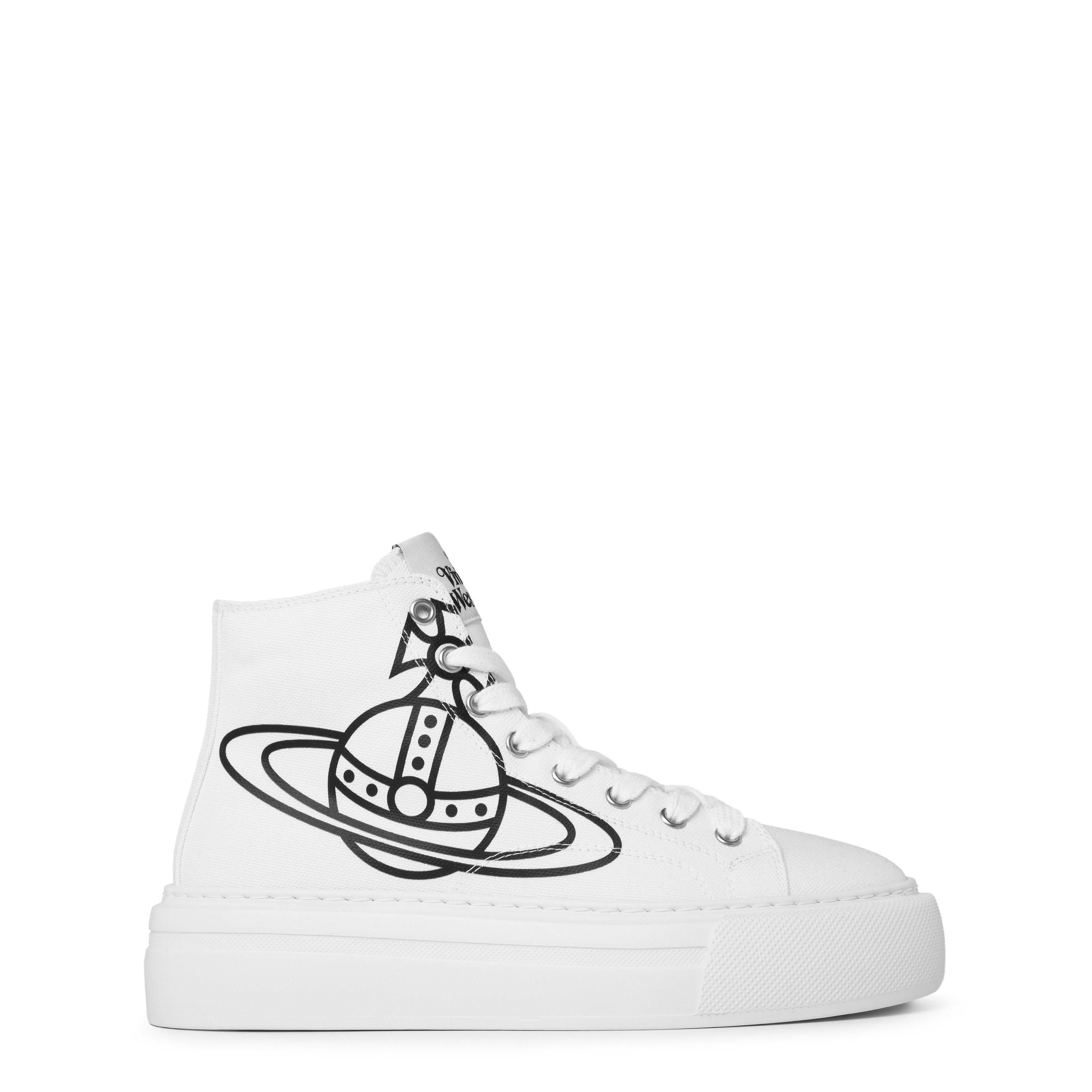 Renowned for fusing the familiar with the future Vivienne Westwood boasts a coveted collection expertly expressed in these Orb-print high-top sneakers. Luxuriously lightweight and stylish these high tops make for a contemporary aesthetic with classic elements. perfect for your weekend or everyday wardrobe. From the work commute to city trips with friends these high tops exude effortless style.