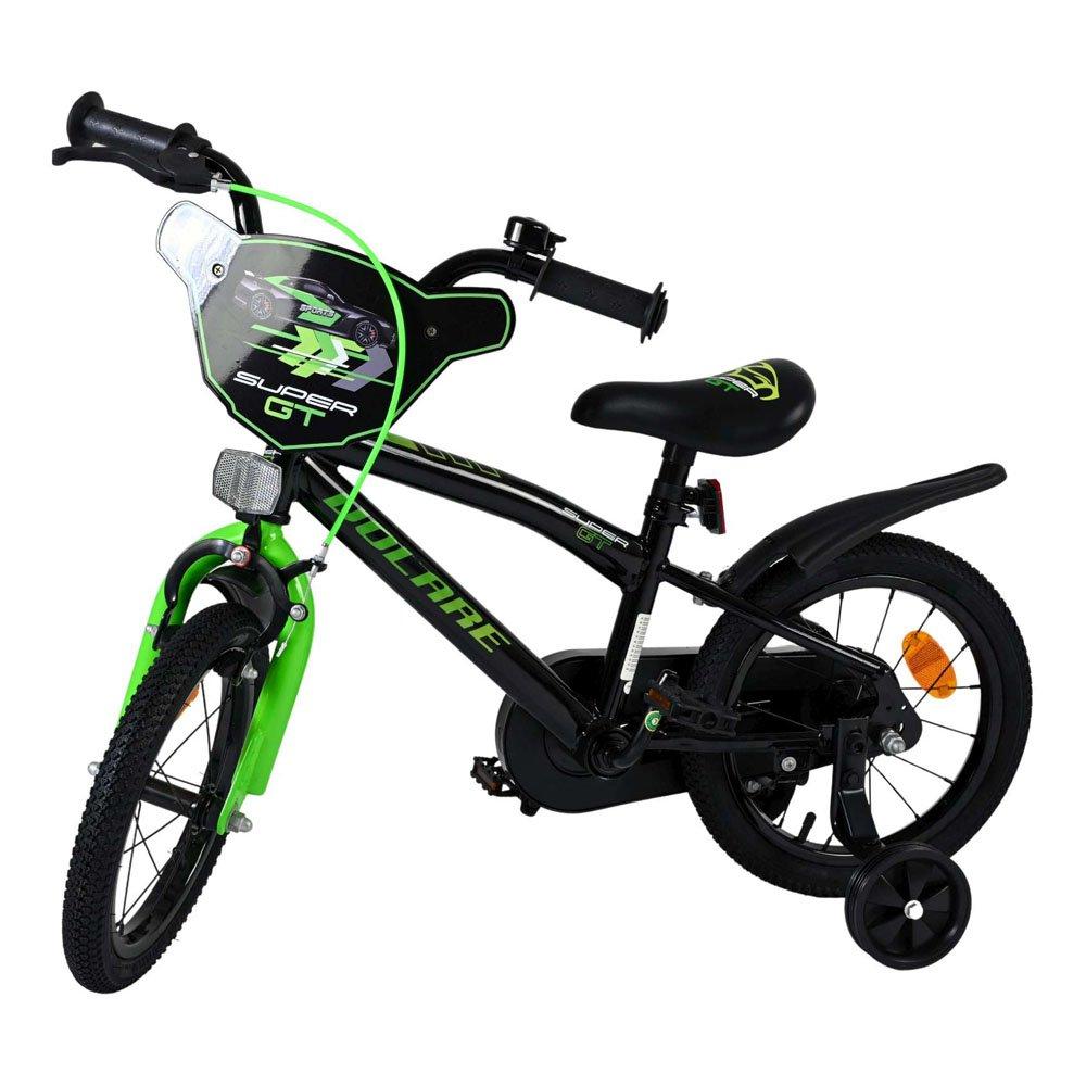 Learning to ride a bike is fun for every child with the Volare Super GT 14-inch children's bike! Safety is paramount! That's why this cool bike doesn't have a coaster brake but two hand brakes, a closed chain guard, and removable training wheels. It also has reflectors on the wheels, the front and back, and a fun bell. Comfort has also been considered. The beautiful green Volare bike with blue accents has a soft saddle, a timeless design, and a unique frame that can withstand a few knocks. To ensure you can enjoy the bike for as long as possible, the saddle and handlebars are height-adjustable. All mounting hardware needed to assemble the bike is included! In short: a top-quality bicycle that your child can enjoy for years to come!