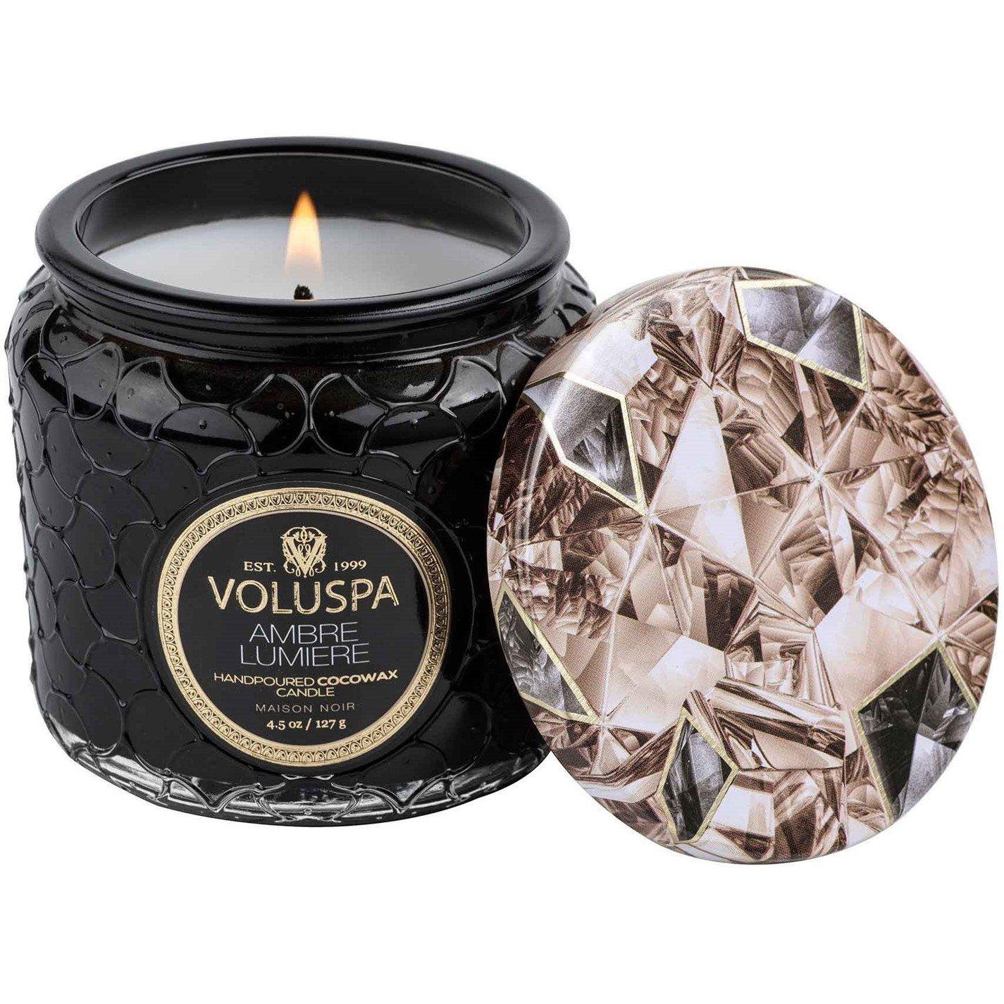 Voluspa's unique coconut wax blend is hand-poured into a 4.5 oz. glass and topped with a decorated tin lid that keeps the candle dust-free when not in use. The single wick allows you to enjoy fragrance throw for 35 hours. Our candles are hand-poured in the United States and feature our proprietary, clean-burning coconut wax blend and 100% natural wicks.