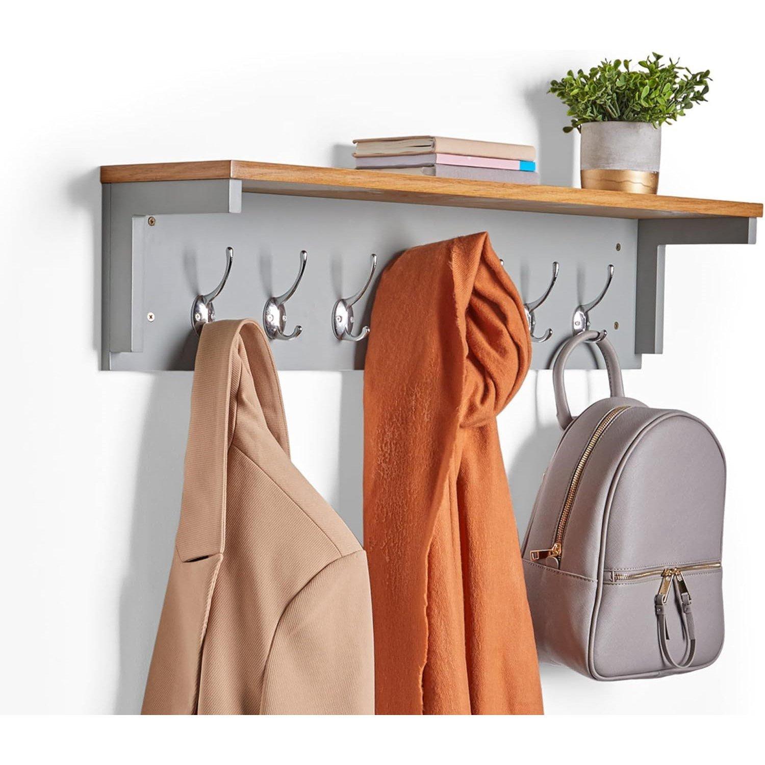 YOUR COAT STORAGE SAVIOUR: De-clutter your hallway with the VonHaus wall mounted coat hooks, finished in a neutral grey colourway with charming ash wood veneer accents for a touch of country style.