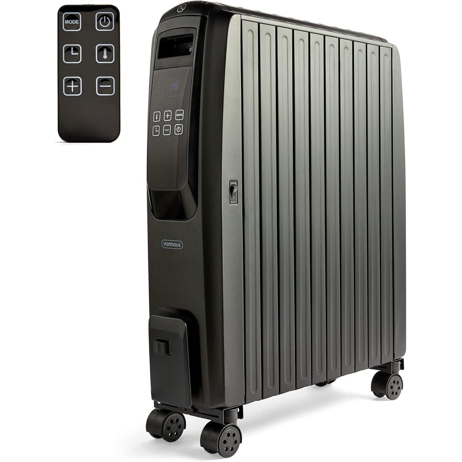 COST EFFECTIVE: Three power settings (1000W, 2000W, 2500W) keep your VonHaus oil radiator watching the pennies for you and with a 24-hour timer to give you complete temperature control, your radiator can be super affordable to run.