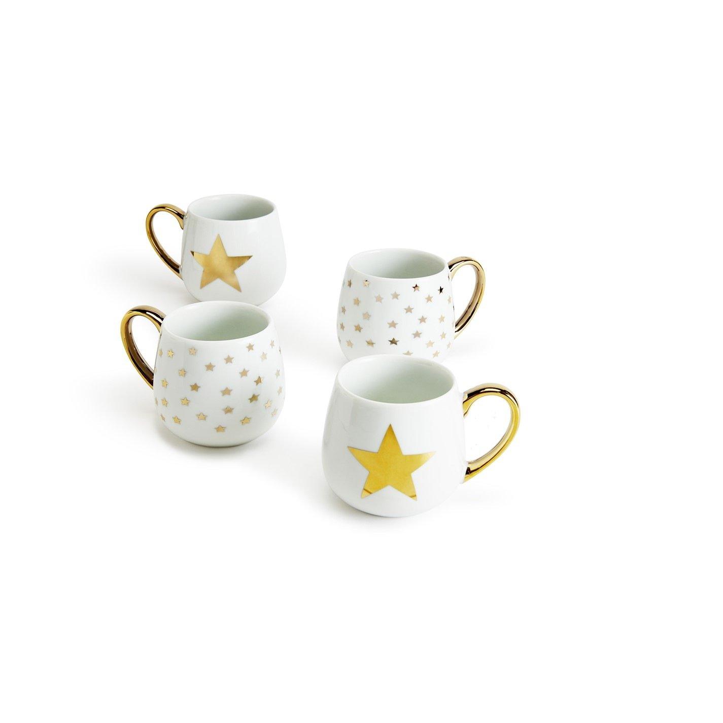 Decor: 2x large gold star + 2x small gold star with gold handle Material: Porcelain Care: Not Dishwasher or Microwave Safe