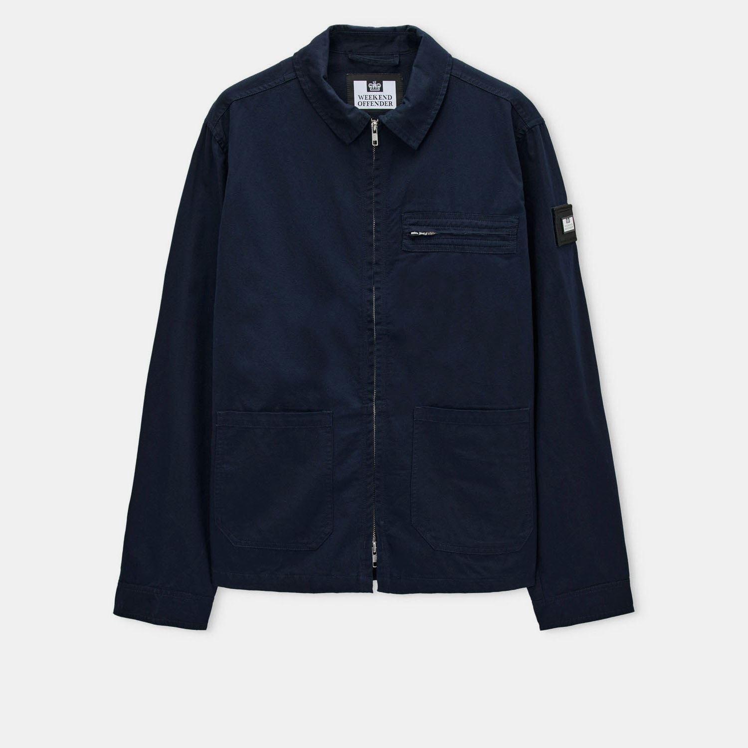 Mid-weight 100% Cotton featuring a subtle diagonal weave. Concealed centre front two-way metal zip with stepped finish detail Jetted zip pocket with reinforced stitch detail to chest Lower patch pockets Classic cuff design with adjustable button function Detachable WO badge to sleeve
