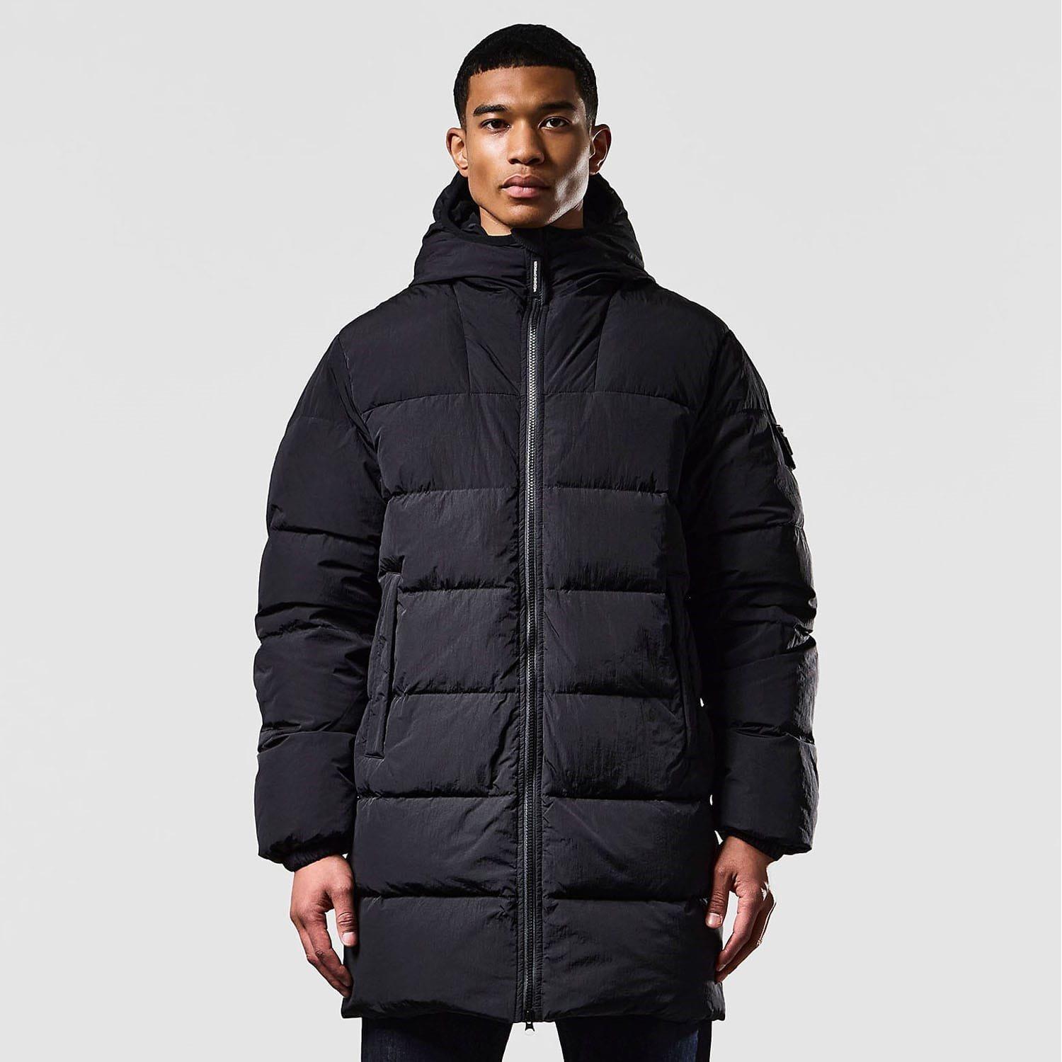 Mens Weekend Offender Sapporo Longline Down Jacket in black.