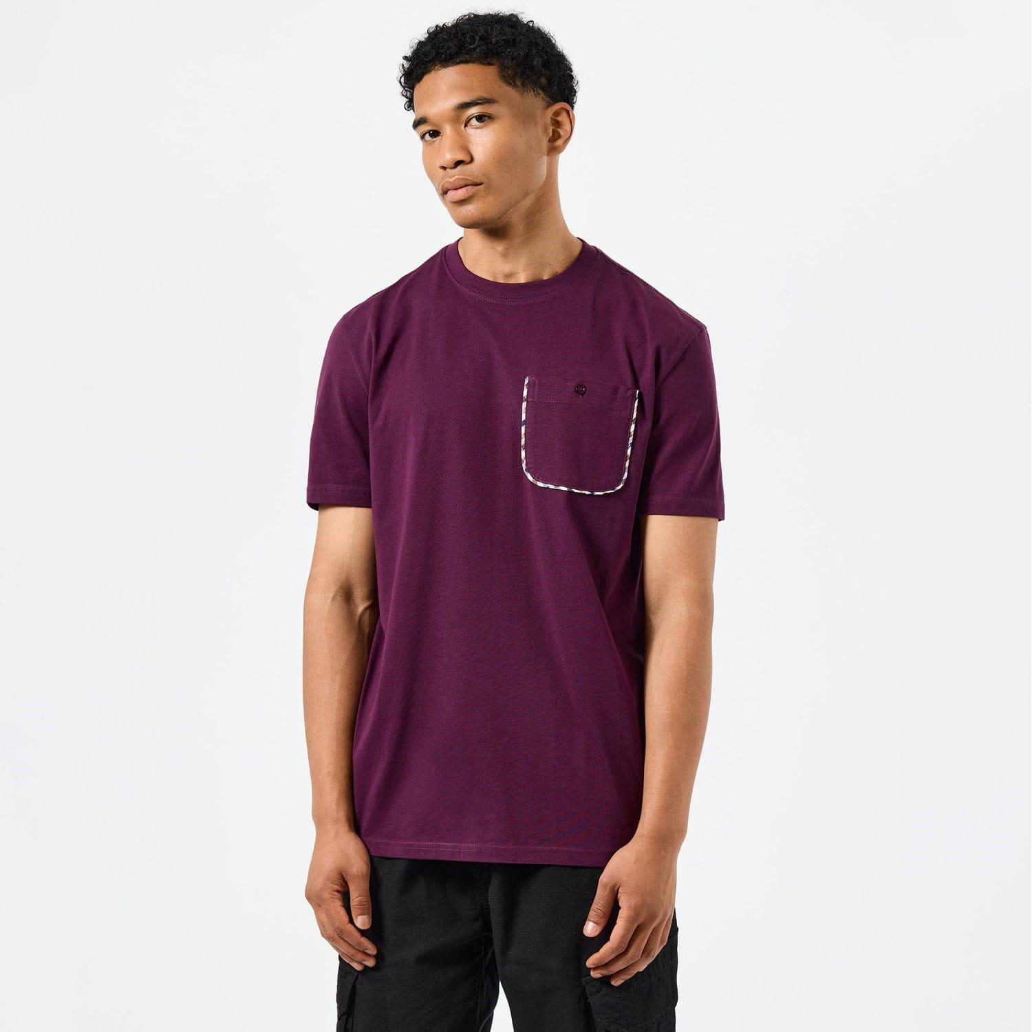 Mens Weekend Offender Sutton Check Detail Pocket T- Shirt in berry.