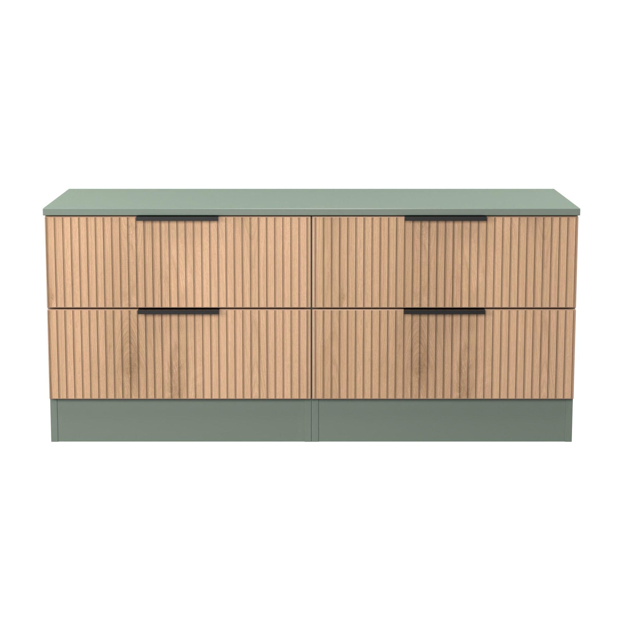 FULLY ASSEMBLED - A large 4 drawer bed box. A Perfect storage solution for any room (not just the end of your bed). Could also be used as a low level TV/Media stand. Combining both simple elegance with modern styling, this new range comes with a striking slatted effect front, sturdy black metal handles and smooth metal drawer runners. Perfect for any modern home. All our furniture is made in the United Kingdom, to the highest quality. It is delivered direct to your location of choice by one of our two man delivery teams, and come full assembled (although legs may be removed to prevent damage in transit). Unit Dimensions (H 50x W 110x D 40cm)