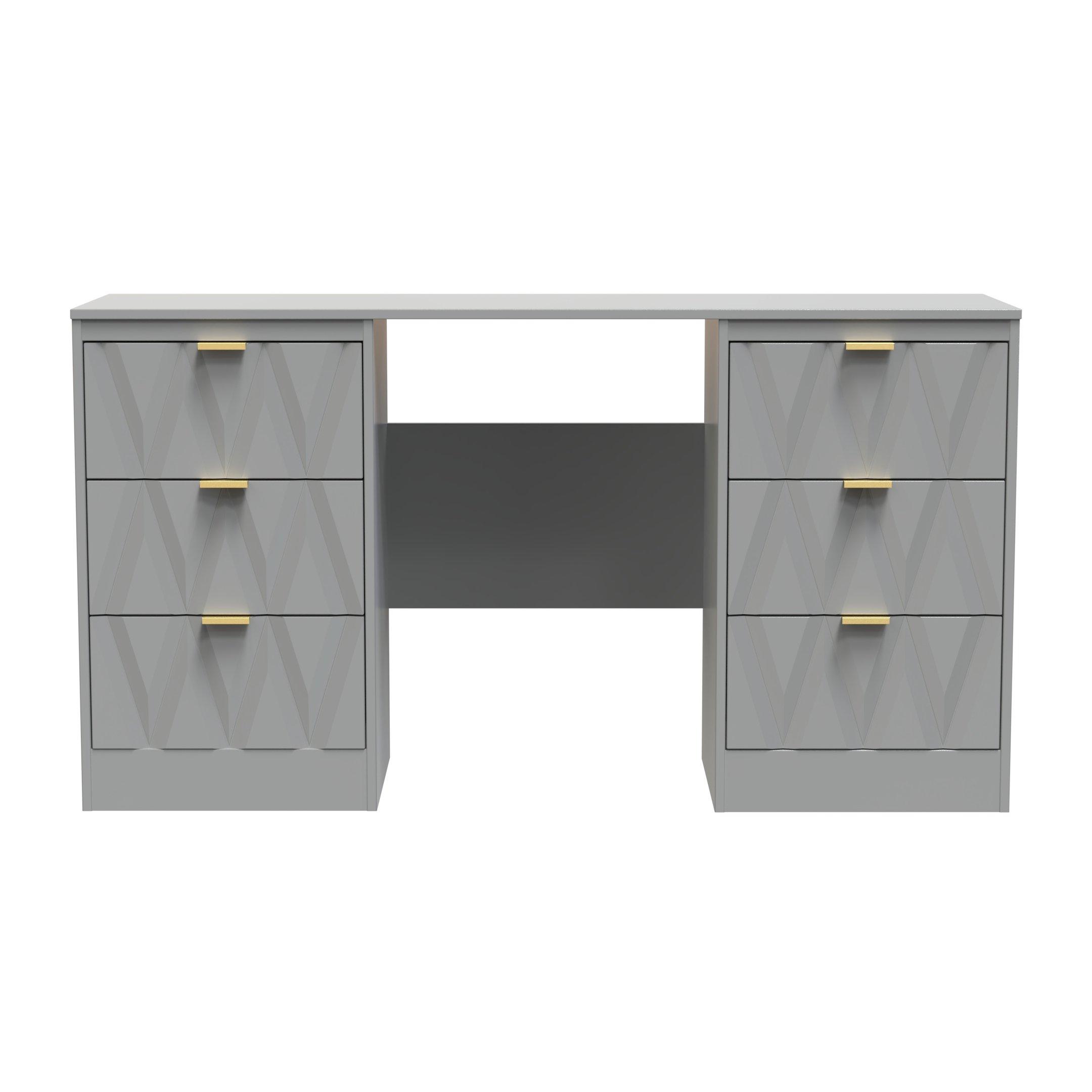 FULLY ASSEMBLED : This practical 6 drawer kneehole desk/vanity is perfect for any bedroom or office. A matching stool and mirror (in 2 sizes) are also available. This distinctive front of the Las Vegas range combines a variety of colour options, with a choice of handles allowing it to compliment any interior design. - Unit Dimensions (H 80x W 128x D 42cm)