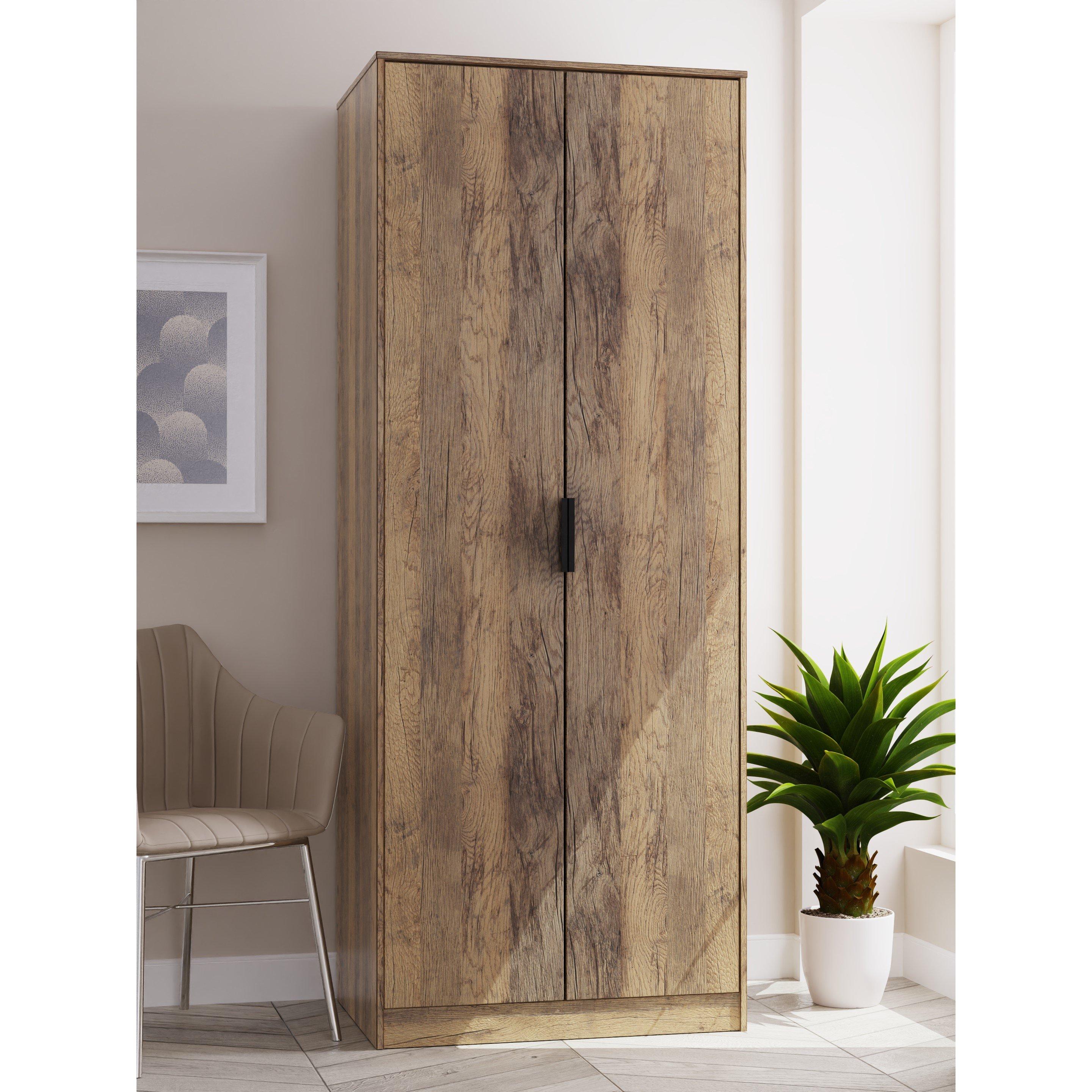FULLY ASSEMBLED - This tall double door wardrobe is perfect for any bedroom. The modern, stylish Hong Kong range is available in a range of durable scratch resistant colour or natural wood finishes. With pull handles on all doors and drawers, with black sleigh metal legs. All drawers come with long lasting metal drawer runners and a linen effect interior. All our furniture is made in the United Kingdom, to the highest quality. It is delivered direct to your location of choice by one of our two man delivery teams, and come full assembled (although legs may be removed to prevent damage in transit). Dimensions: 197x77x53cm