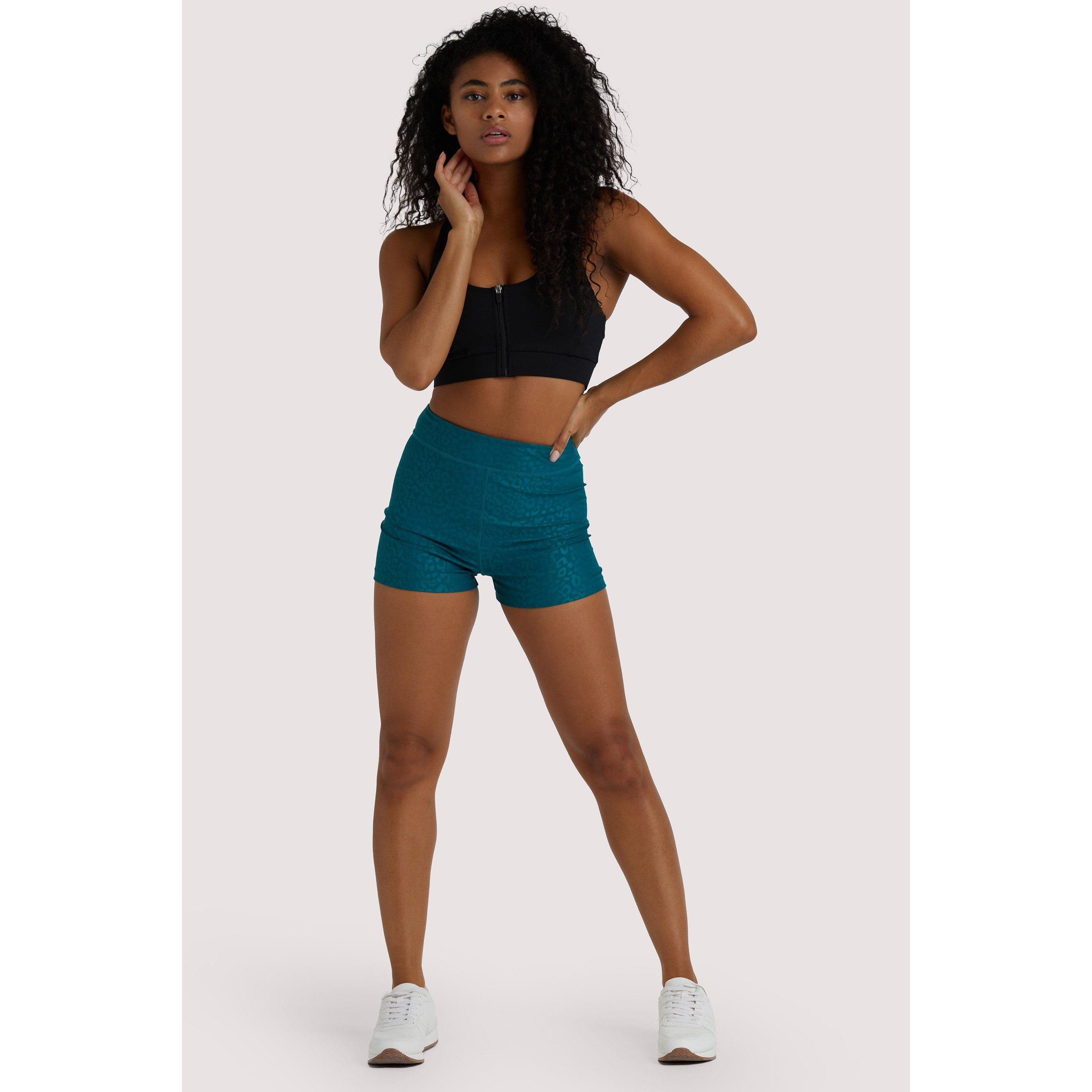 Diamond gusset Teal airtex jersey Thick waistband for support Perfect for cycling, running and yoga Wetlook leopard effect