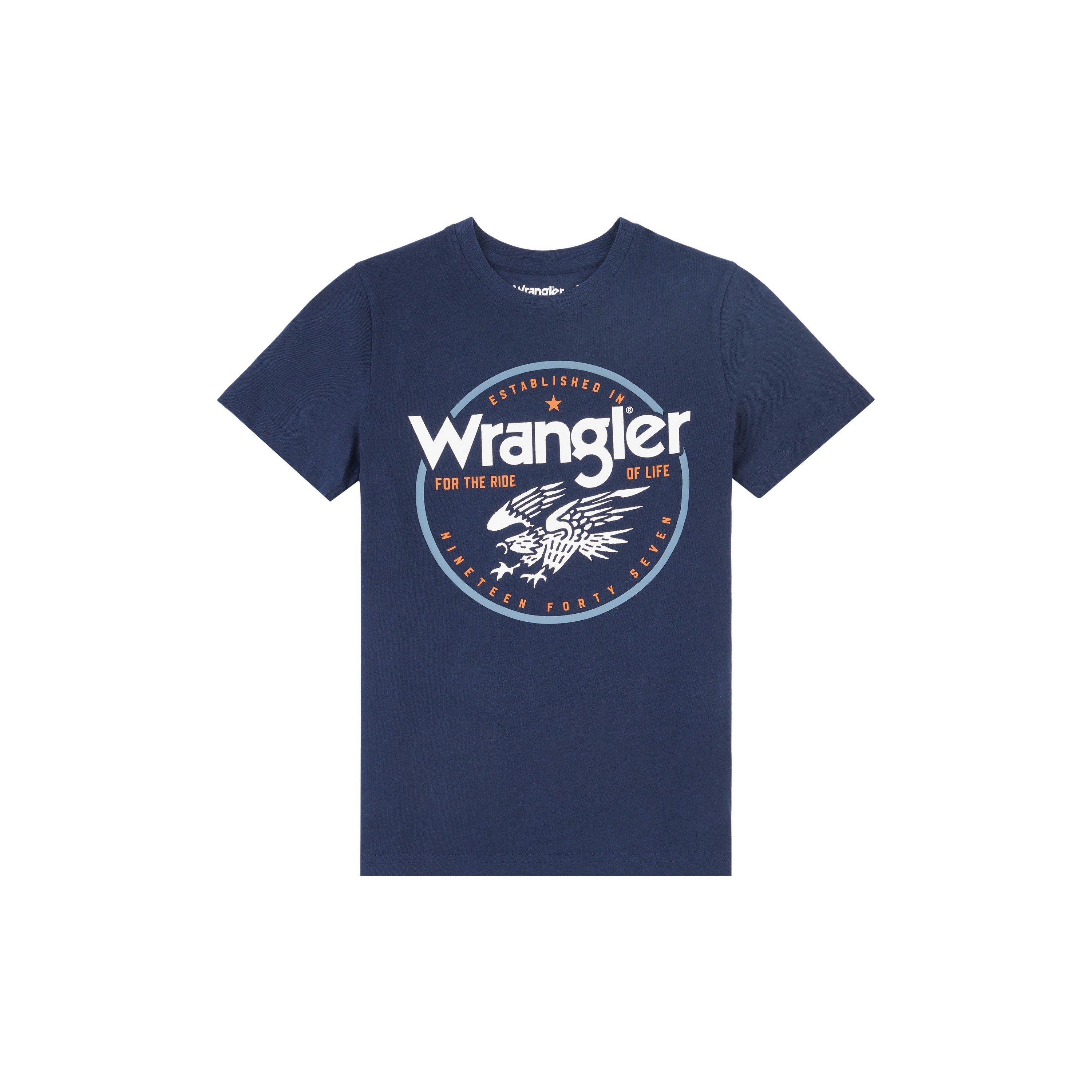 The Children's Eagle Regular Fit T-Shirt from Wrangler delivers casual comfort with thoughtful design elements and a defined shape with clean lines. Made for easy styling, this tee is great for any child, featuring balanced proportions for unrestricted movement and works well with other clothing for active youth.