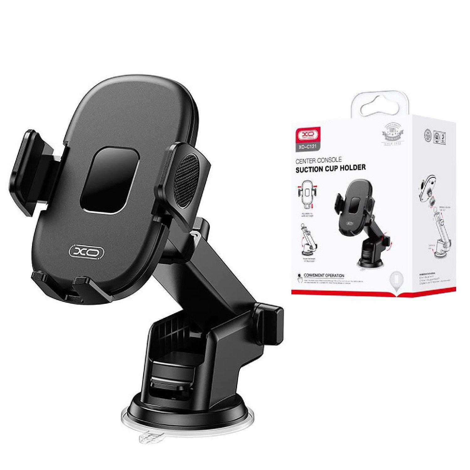 XO-C121 suction windscreen/dashboard in-car phone holder. Features a multi-joint adjustable arm to position and rotate for adaptable, convenient positioning of your device. Adjustable side brackets allow for compatibility with most smartphone models, and in combination with secured bottom bracket, keep your device steady and safe from falls caused by bumps and vehicle movement.