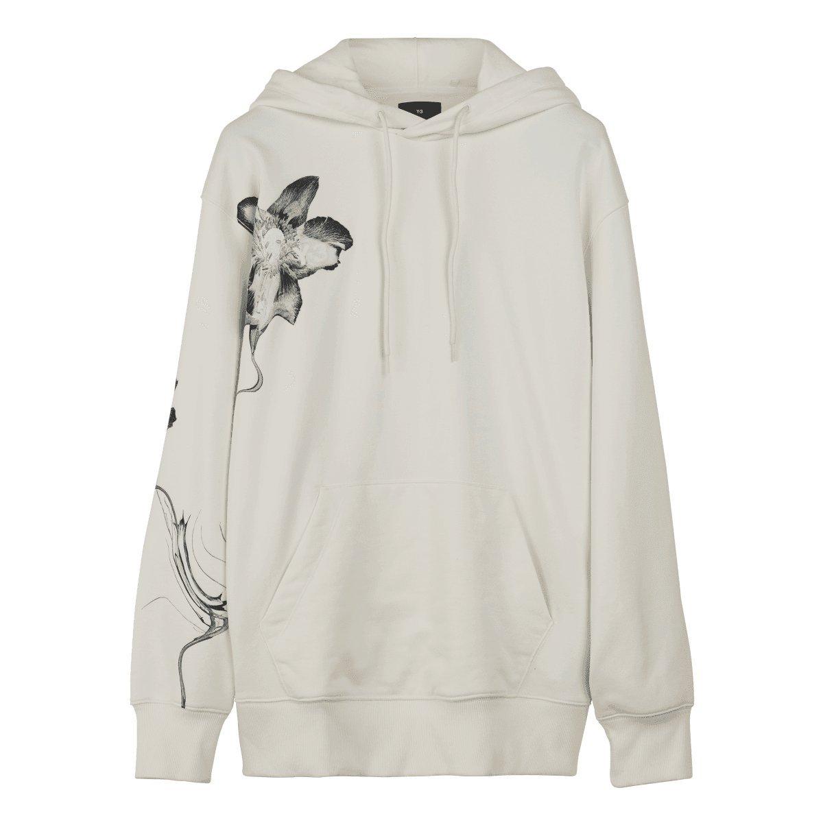 The Y-3 Graphic French Terry Hoodie blends essential everyday wear with graphic style. An abstract floral print sits on the chest and wraps the sleeve. Cotton French terry fabricates a relaxed build and a kangaroo pocket emphasises laid-back comfort.
