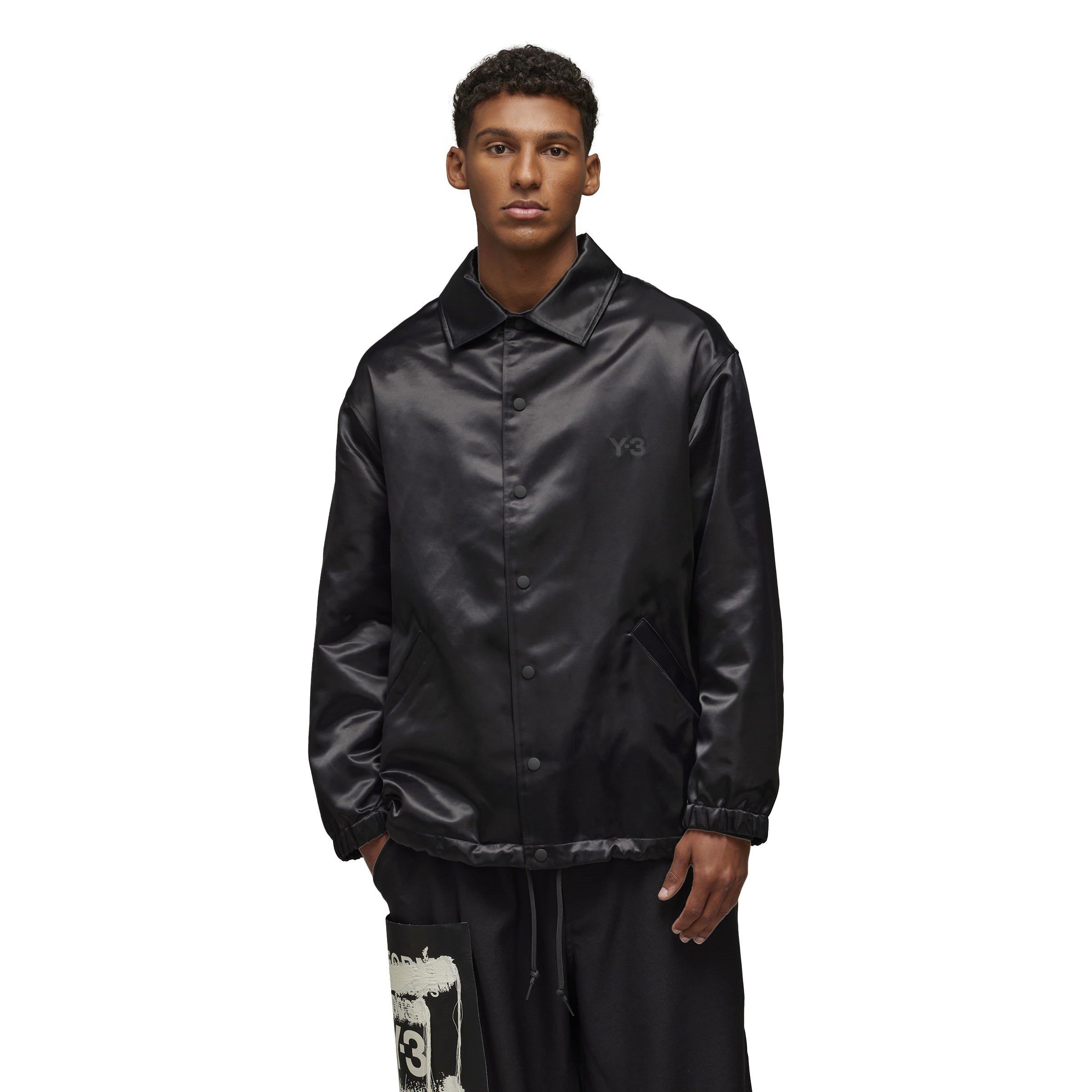 Y3's Graphic Long Sleeve Coach Jacket delivers street style with modern design. Made from soft satin in a loose fit, this minimalist piece features Y-3 branding on the rear and secures with practical popper fastenings.
