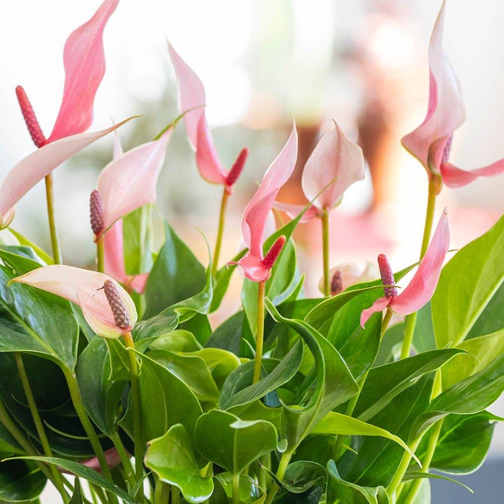 Bring months of exotic colour into your home with Anthurium 'Lilli', a striking, long-lasting houseplant, also known as the Flamingo Flower. This compact variety produces glossy, heart-shaped leaves and distinctive pink spathes that look like flowers but are actually waxy leaves.