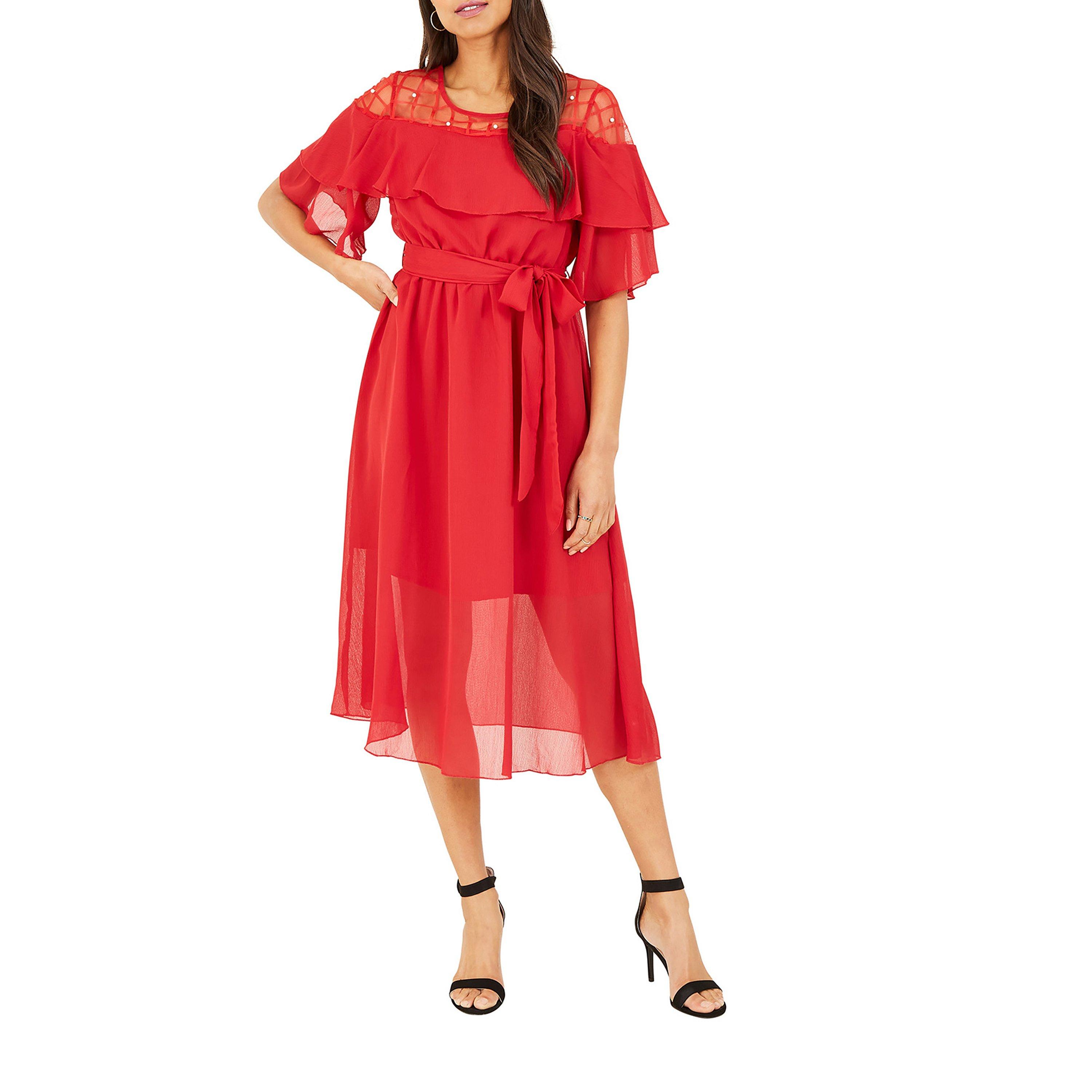 Crafted from lightweight fabric and framed by a self-tie waist, this midi dress features lace inserts on the shoulders. It's perfect for dressing up or down.