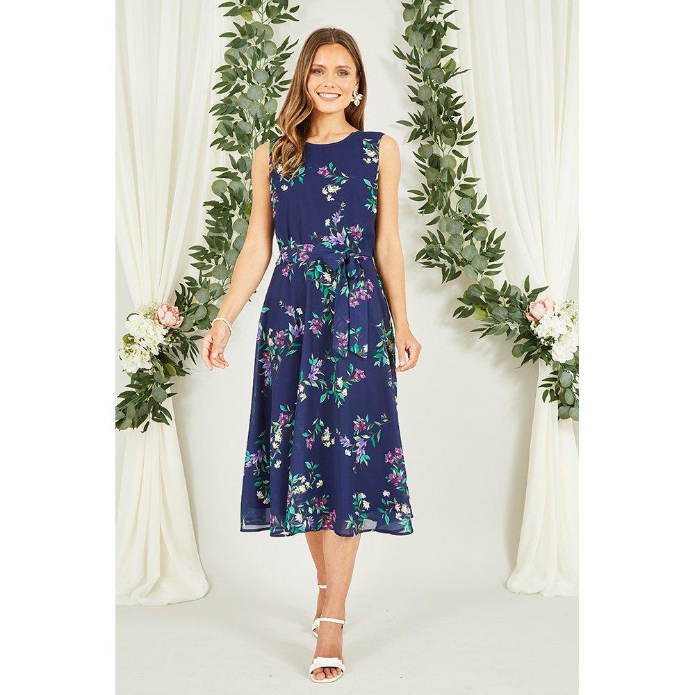If you love florals, then this skater dress is for you! Inspired by the first signs of springtime, this print has been lovingly designed in house, exclusively by Yumi. In a classic fit and flare design, this dress would be perfect for a springtime wedding guest, with a self tie belt at the waist and flattering round neckline. Style this with a bolero in cream and strappy sandals, for best dressed guestlist energy.