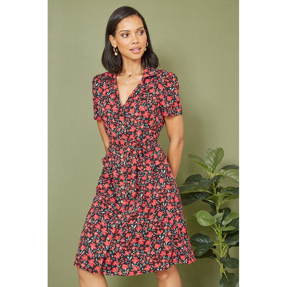 Look like perfection in poppy print in this a totally timeless fit. Crafted in a vintage style with a shirt dress cut, this look benefits from a flattering waist tie belt, roomy pockets and a button through fastening. Match with tights and ankle boots to complete the look.