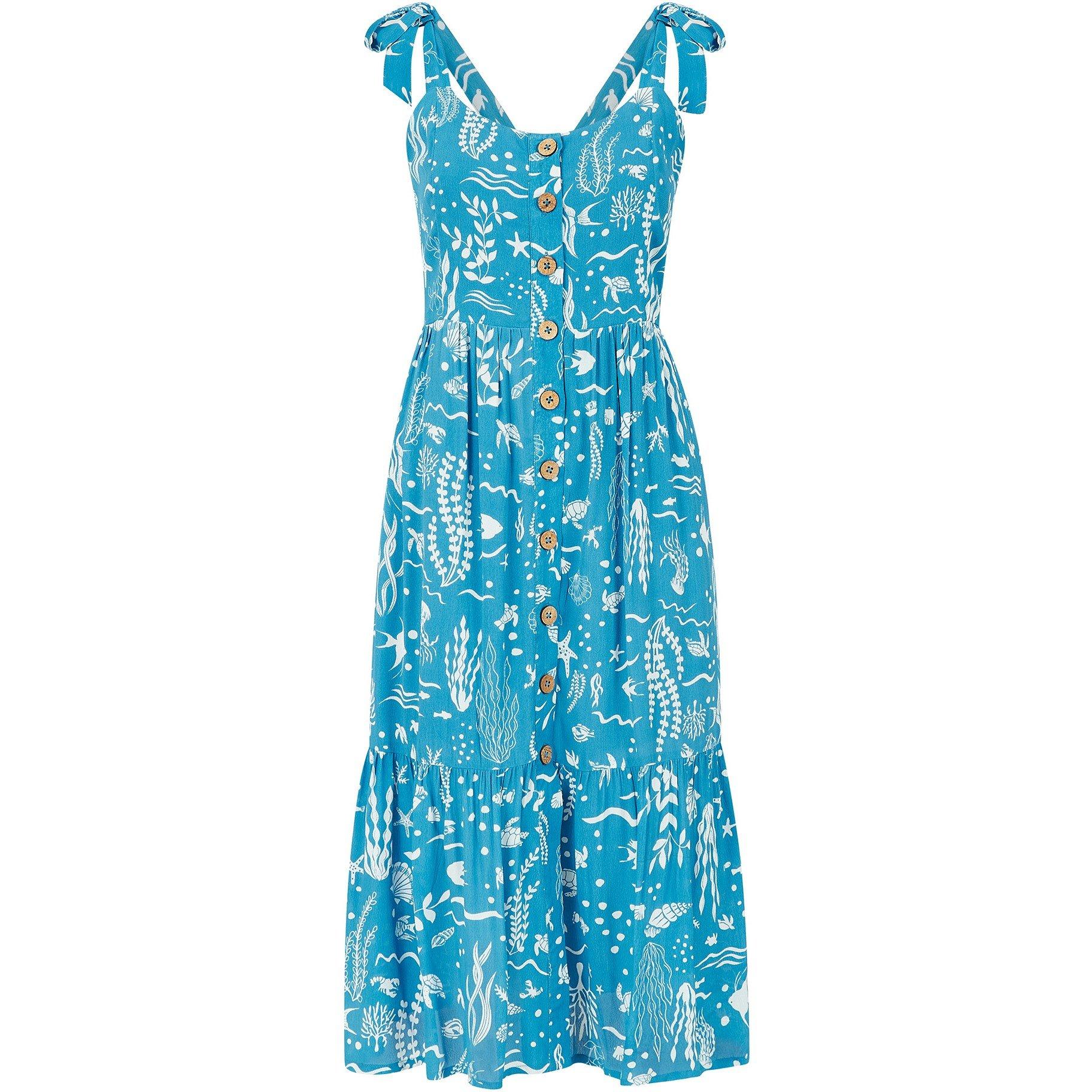 Embrace nautical style in Yumi's Blue Sealife Print Slip Dress. This simple shape features a flowing design with maritime motifs, ideal for summer styling with minimal accessories.