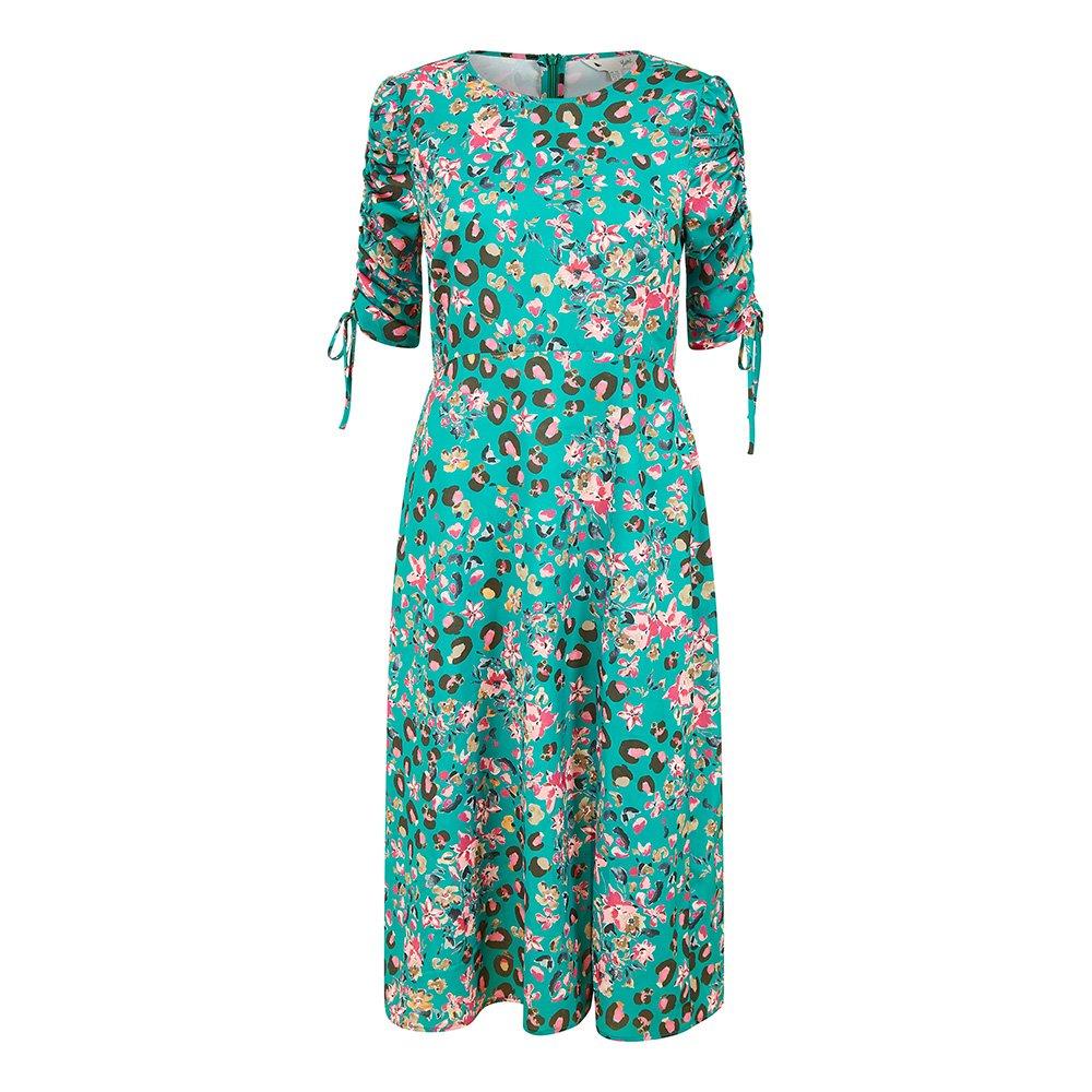 /Home/Wedding Boutique/Wedding Guest/Wedding Guest Dresses/Women's Green Animal Floral Print Midi Smock Dress