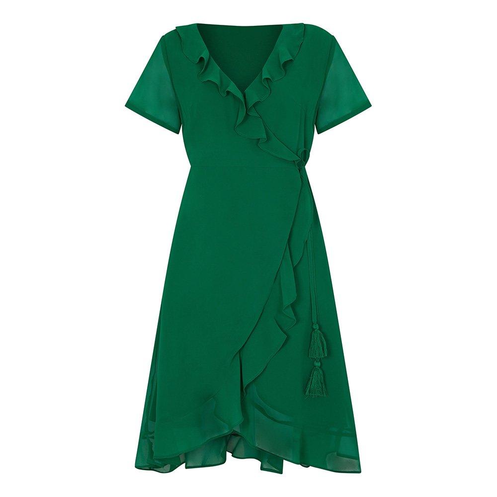 The Wrap Dress from Yumi features a wrap design that offers a flattering profile.