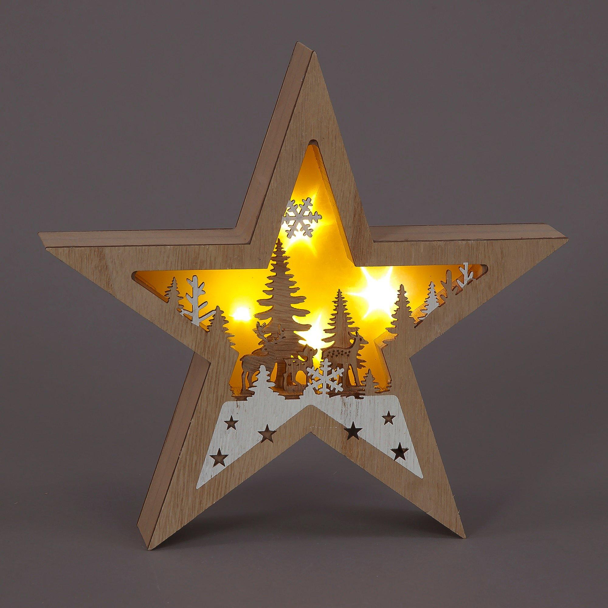 LED Lit Wood Star with inset Winter Tree Scene