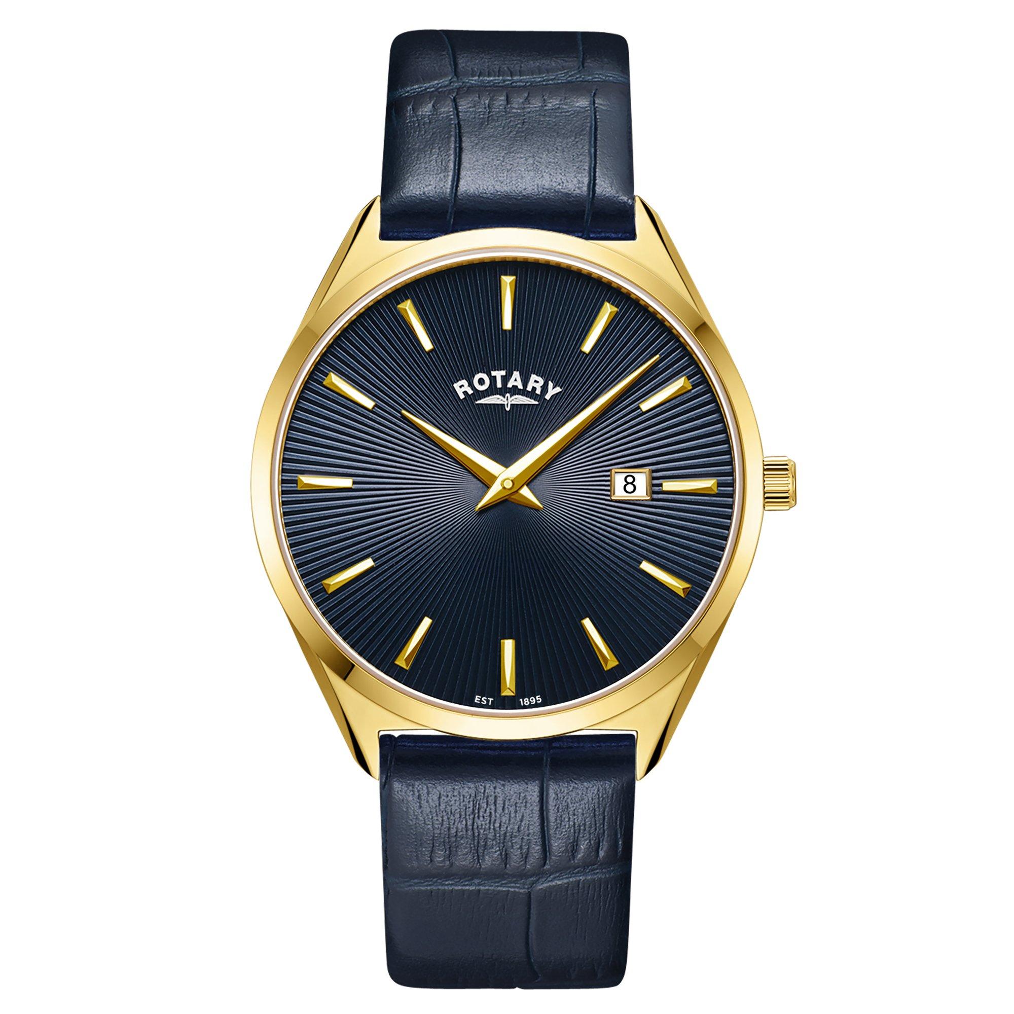 Mens Ultra Slim SS Blue Leather Strap Watc