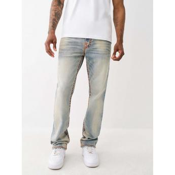 Men's Printed Cotton Distressed Straight Leg Jeans