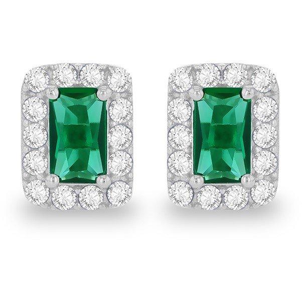 9ct Gold Rectangle Nano Emerald CZ Stud Earrings