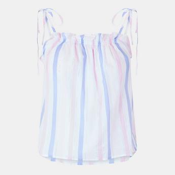 Womens Sleeveless High Neck Top with Drawstring Side Detail.