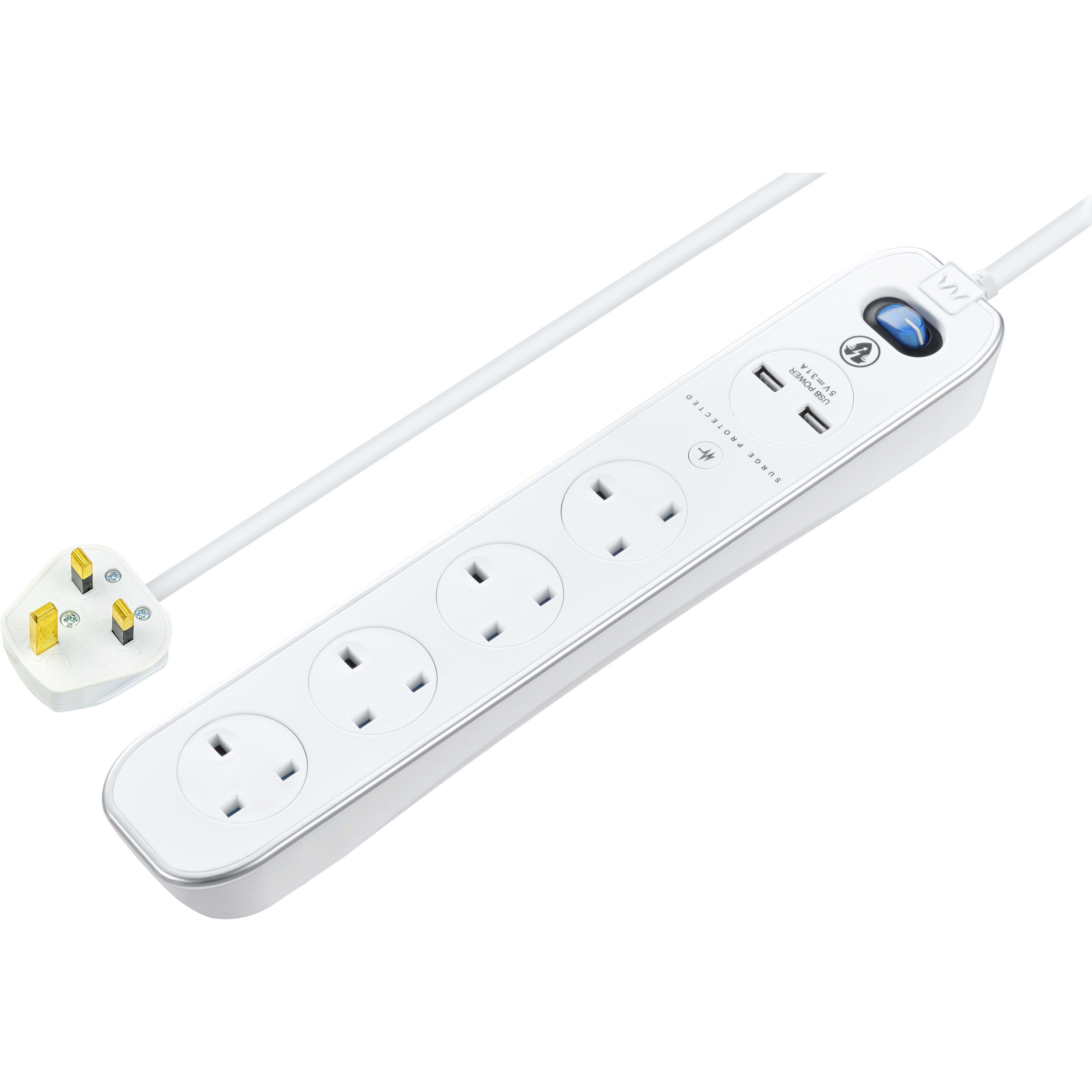 Masterplug 4 Socket USB 2m Compact Extension lead
