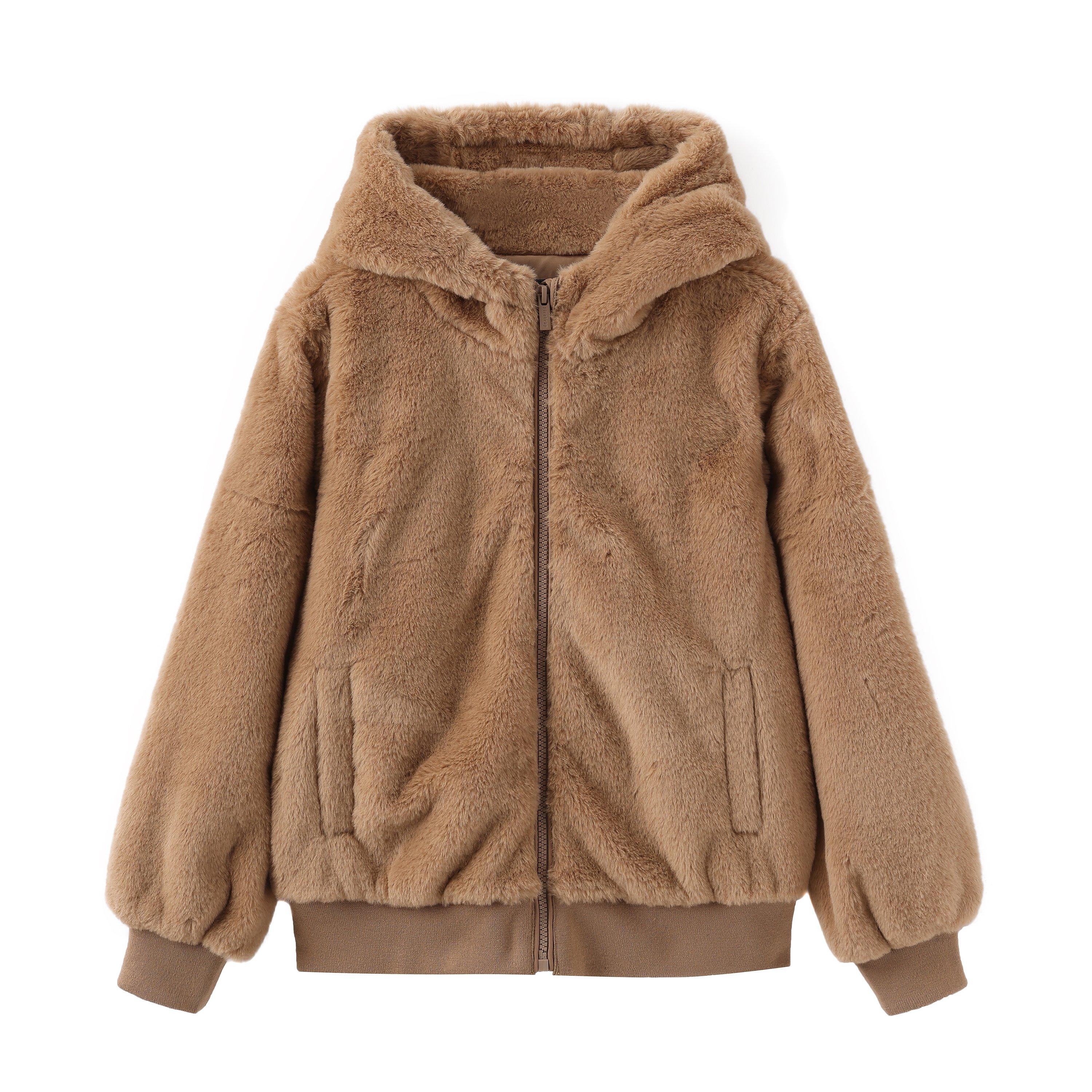 Kids' Short Plush Long Sleeve Shearling Jacket