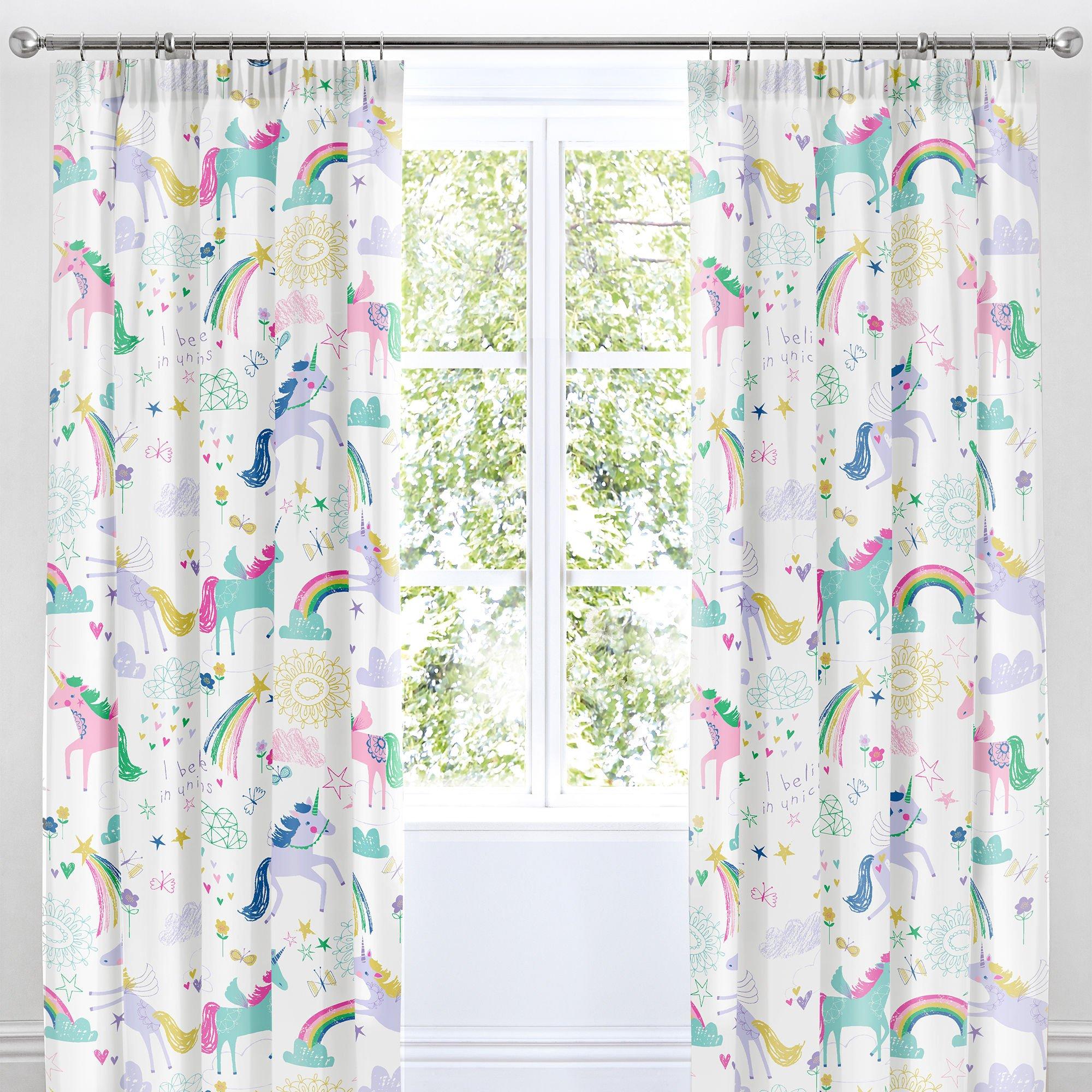Rainbow Unicorn Kids Bedroom Pencil Pleat Curtains