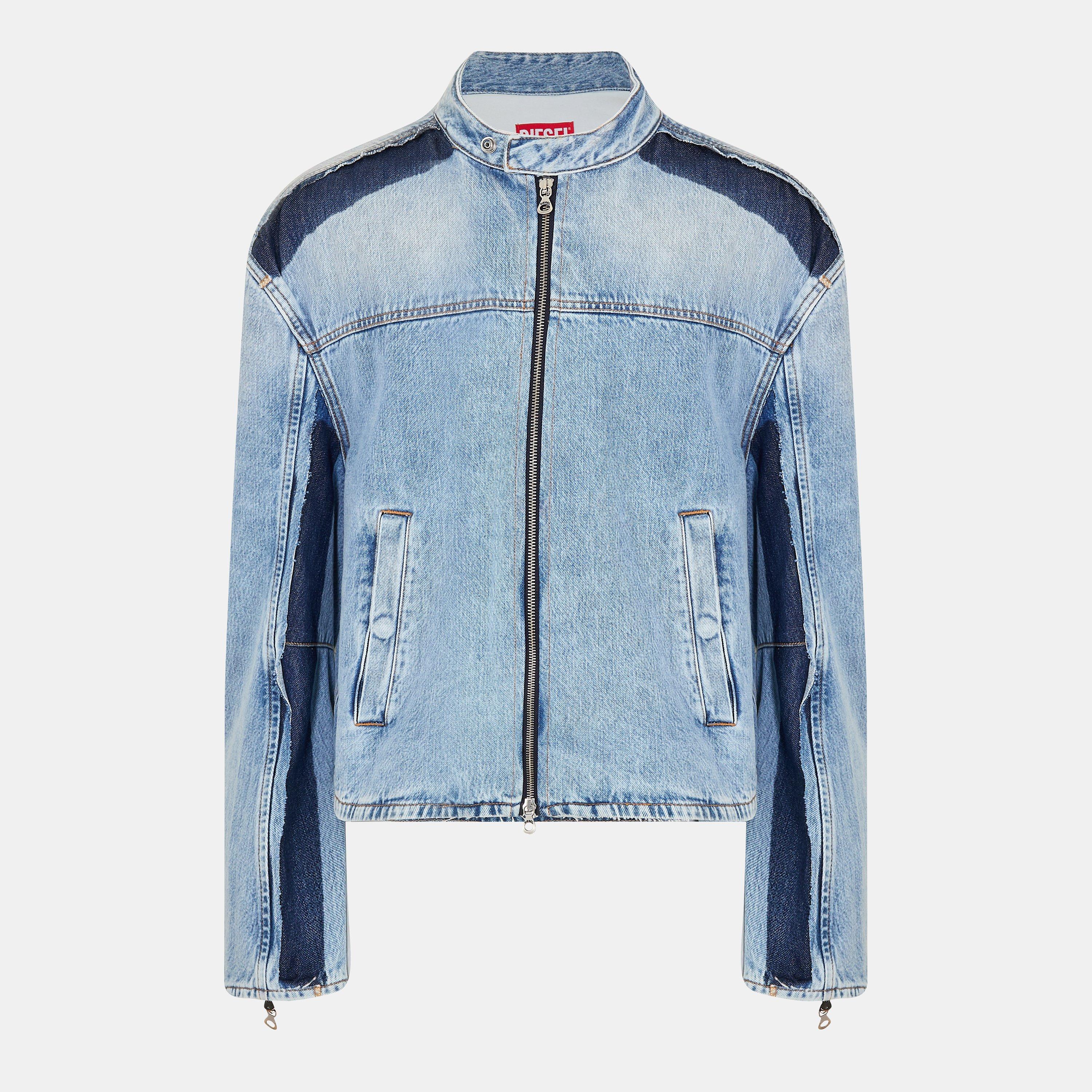 This season's collection of men's Diesel denim jackets offers a selection of classic and contemporary styles including washed effects, oversized silhouettes and western-inspired features. Invest in a timeless trucker jacket as the ultimate layering piece or for chiller days opt for a sherpa denim jacket with the lining offering added warmth. Choose a blue denim jacket in various washes from light to dark wash, a black denim jacket for versatility or for the warmer months opt for a white hues to lighten up your look. Shop the edit of Diesel denim jackets for men to find the perfect statement outerwear piece.