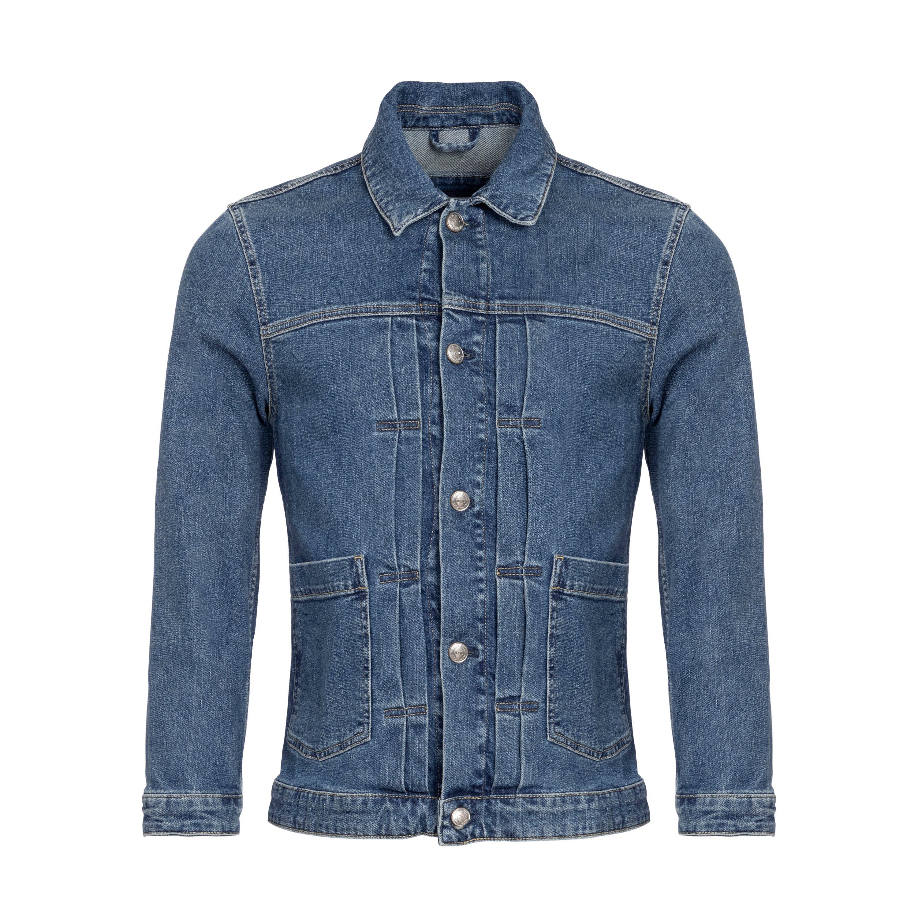 Men's Blue Denim Cotton Button Front Patch Pocket Jacket