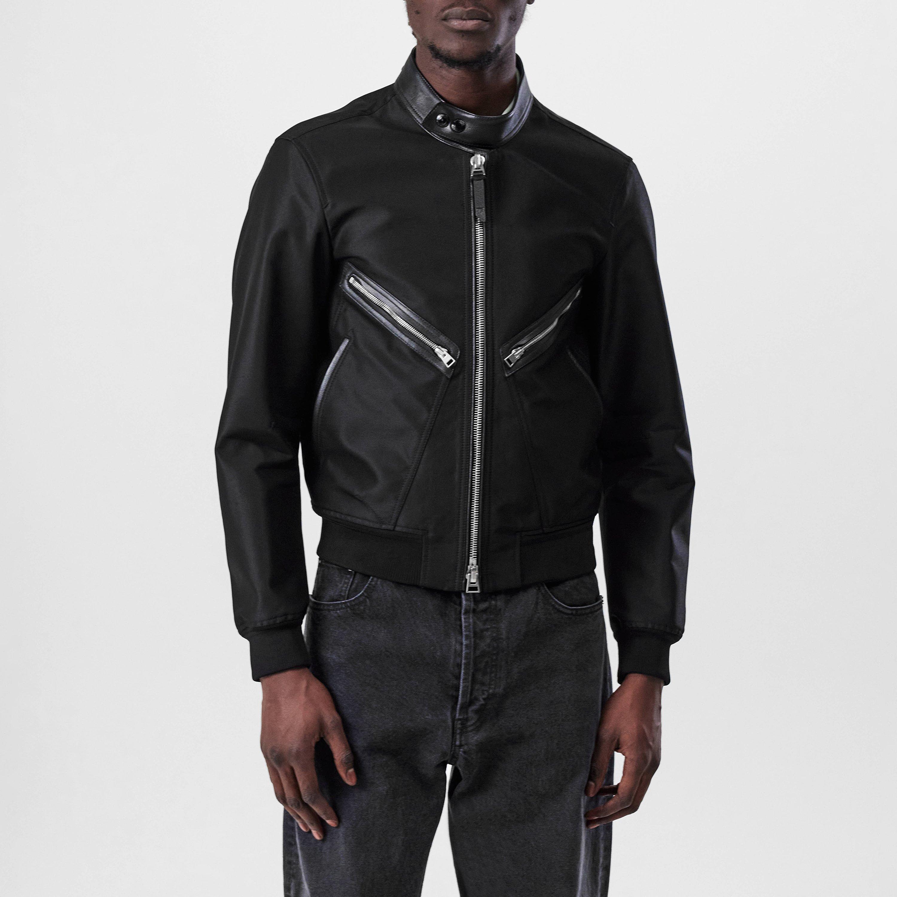 Men's Leather-Trimmed Wool and Silk Blend Bomber Jacket