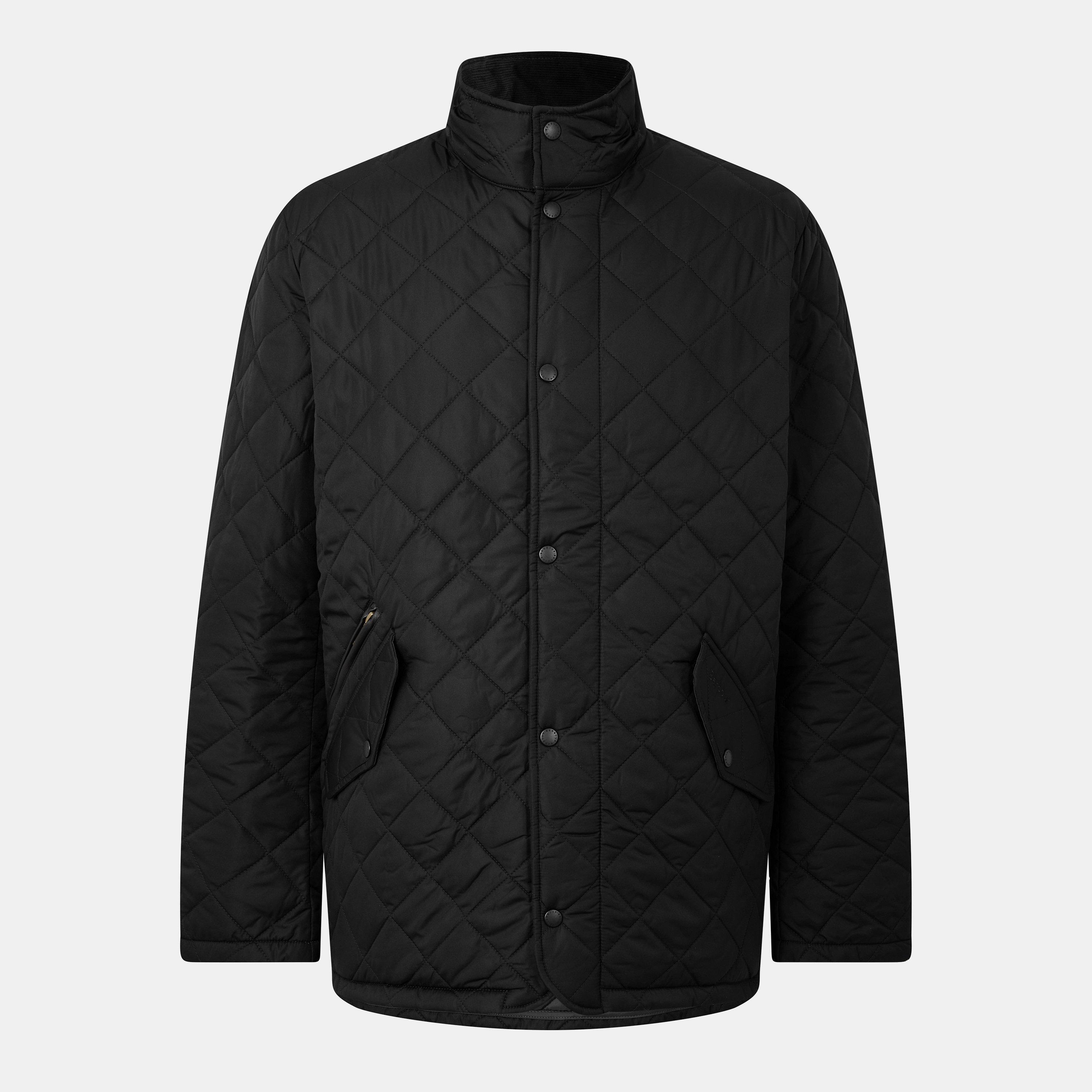 Whatever your weekend holds, stay cosy in one of our versatile men's black quilted jackets. Hoodless bomber styles with elasticated cuffs and waistlines create the perfect extra layer for meeting friends around town. Pair yours with a simple white t-shirt and straight-leg jeans for a laid-back look. For a timeless outerwear staple, a mens black quilted coat combines practicality with sleek, understated style. Designed for both warmth and versatility, these jackets are easy to dress up or down for any occasion. Thick black quilted designs with insulated padding preserve body heat on icy days, while funnel-neck pieces with zip-up fronts block out the wind chill. Shop classic styles from brands like Barbour in our men's black quilted jackets collection.