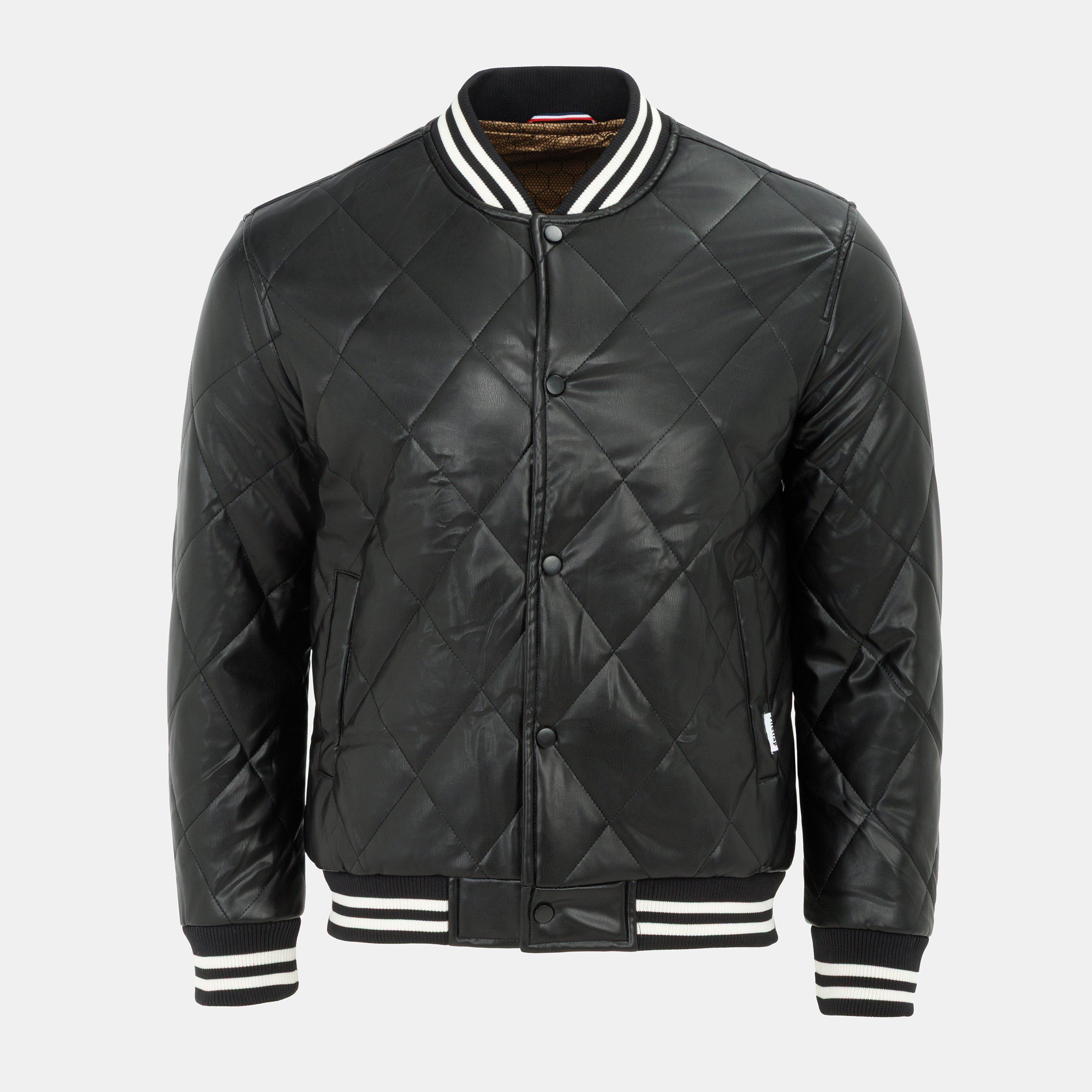Men's Faux Leather Button Long Sleeve Quilted Jacket