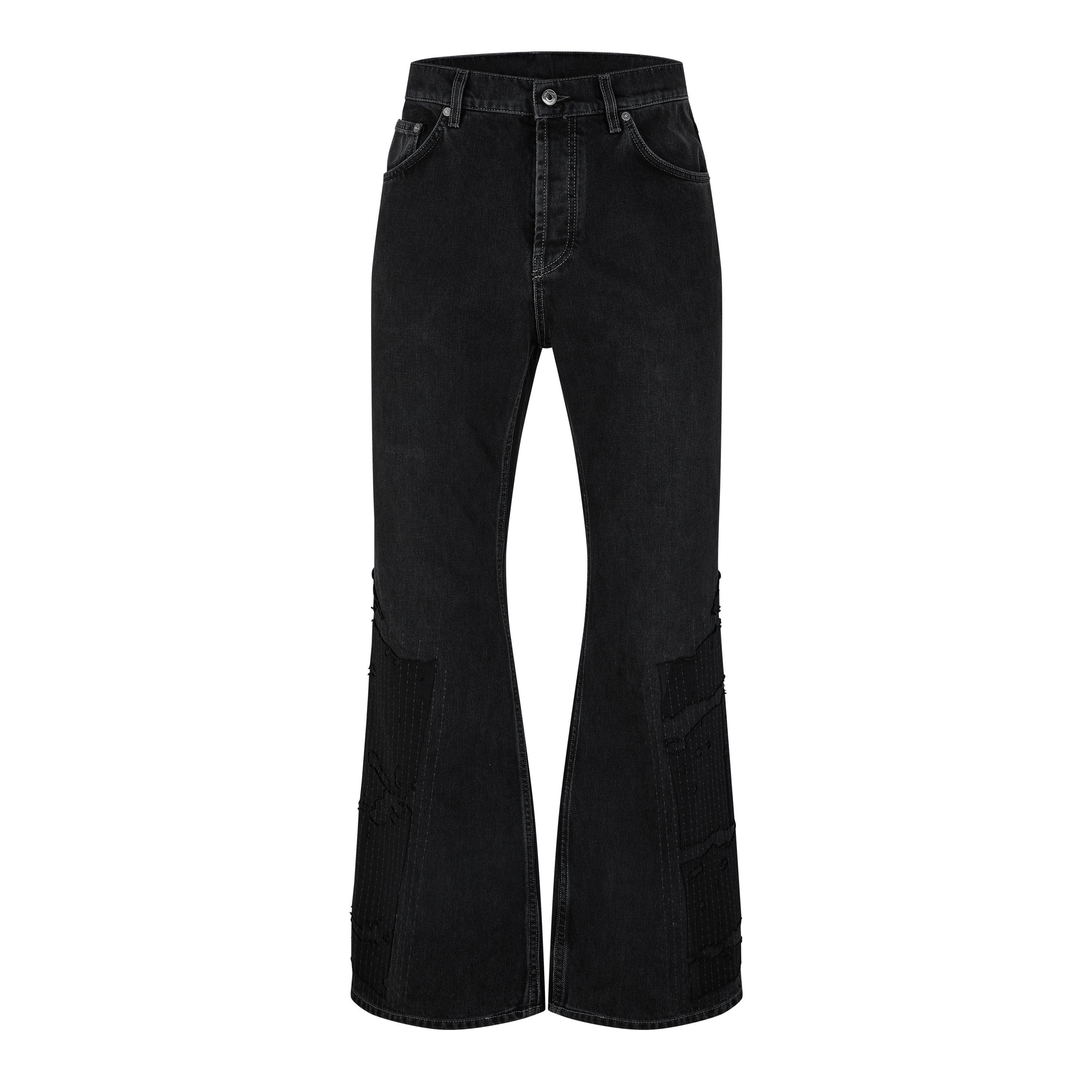 Men's Diag Flare Distressed Patchwork Cotton Bootcut Jeans