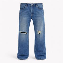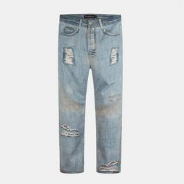 Mens Charcoal Wash Biker Jean with Cut Out Knee Details